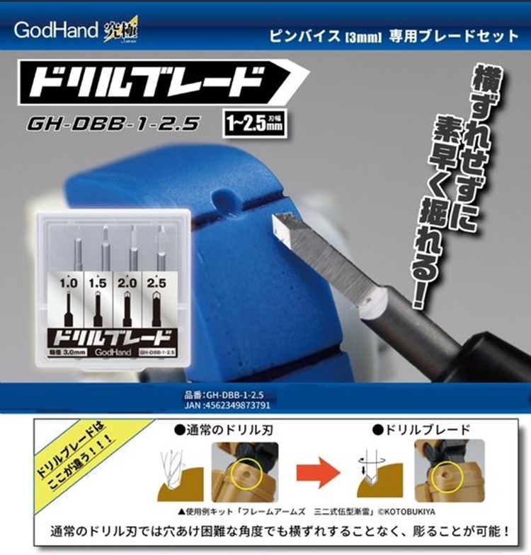 ●【品名】日本GodHand神之手高精度特殊刃物鋼雕刻刀4入組GH-DBB-1-25鑽孔刀(葉型;軸徑3mm;穴徑1mm 1.5mm 2mm 2.5mm)
