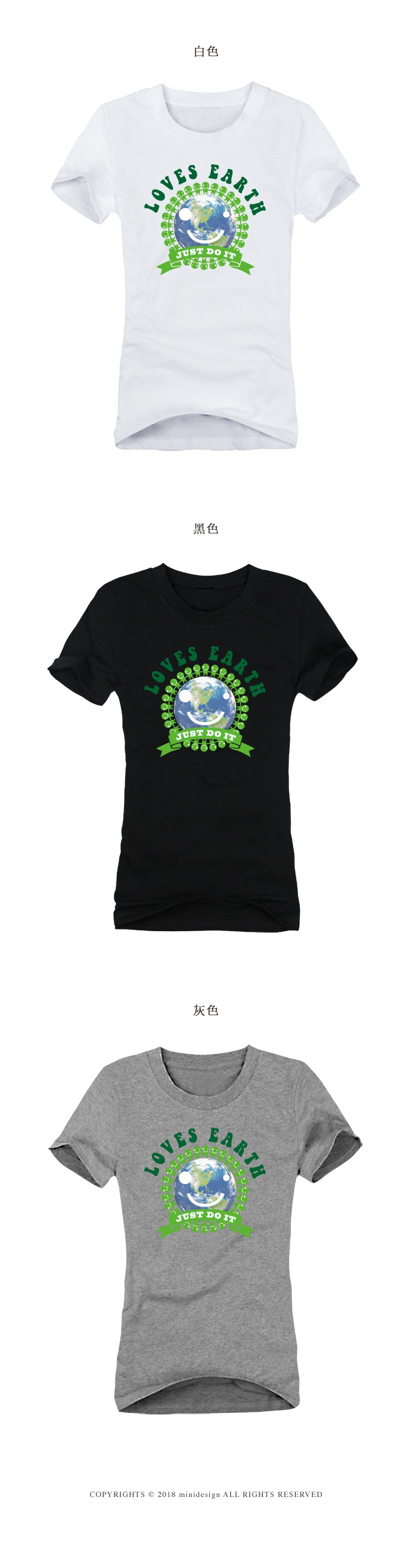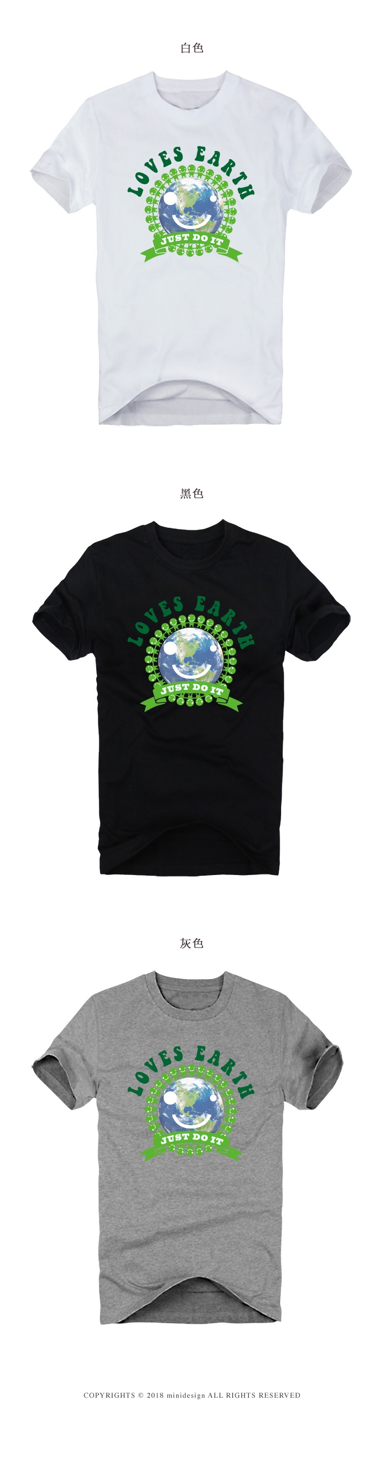 LOVES EARTH環保小綠人潮流設計短T 五色-Minidesign |