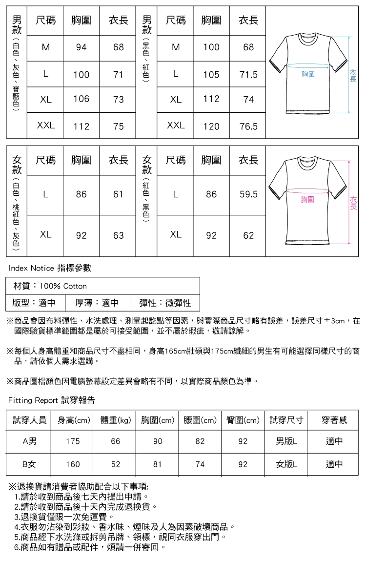 商品說明br/ br/【產地】 br/ br/CHINAbr/ br/【保固期限】 br/ br/無 br/ br/【保固範圍】 br/ br/新品瑕疵 br/ br/【退換貨】 br/ br/七天鑑賞期內退換貨請保持商品完整性,商品必須為『全新未經使用』,商品包裝需完整回收,包含購買商品、外盒、附件、內外包裝、隨機文件、贈品、商品外膜等請一併退回,若有缺件、商品毀損不完整情況發生,恕無法退換貨 。br/退換貨請消費者協助配合以下事項:br/ 1.請於收到商品後七天內提出申請。 br/ 2.請於收到商品後十天內完成退換貨。br/ 3.退換貨僅限一次免運費。br/ 4.衣服勿沾染到彩妝、香水味、煙味及人為因素破壞商品。br/ 5.商品經下水洗滌或拆剪吊牌、領標,視同衣服穿出門。br/ 6.商品如有贈品或配件,煩請一併寄回。 br/ br/【注意事項】br/ br/1.商品圖檔顏色因電腦螢幕設定差異會略有不同,以實際商品顏色為準br/ br/2.衣服類請避免使用烘衣機烘乾,且勿使用含有漂白溶劑的洗劑。清洗時多少會有掉色的現象,建議深色與淺色衣物分開洗滌,且建議將衣物反面過來請放入洗衣網袋中,可保衣物壽命延長