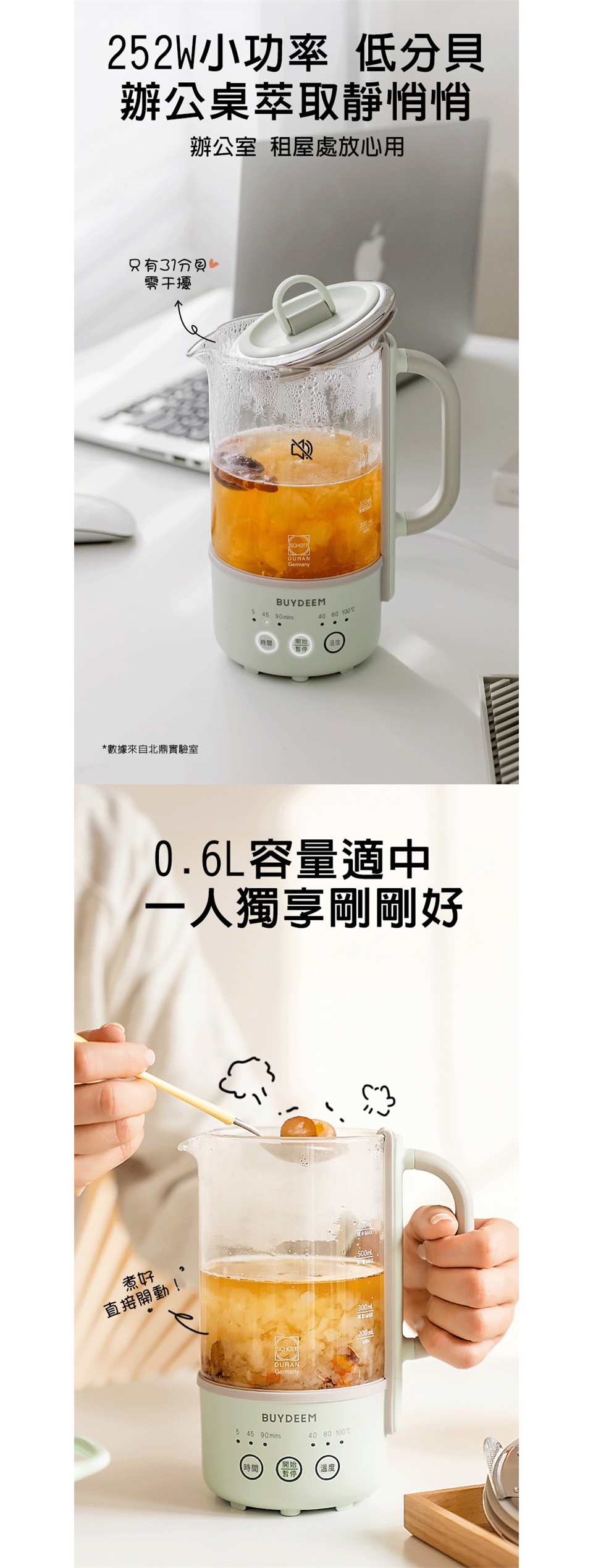 ●你還在用古早的方式熬中藥、養生湯、花果茶嗎?600ml小巧體積,小功率,僅31分貝,安靜不打擾,更適合你的個人空間!