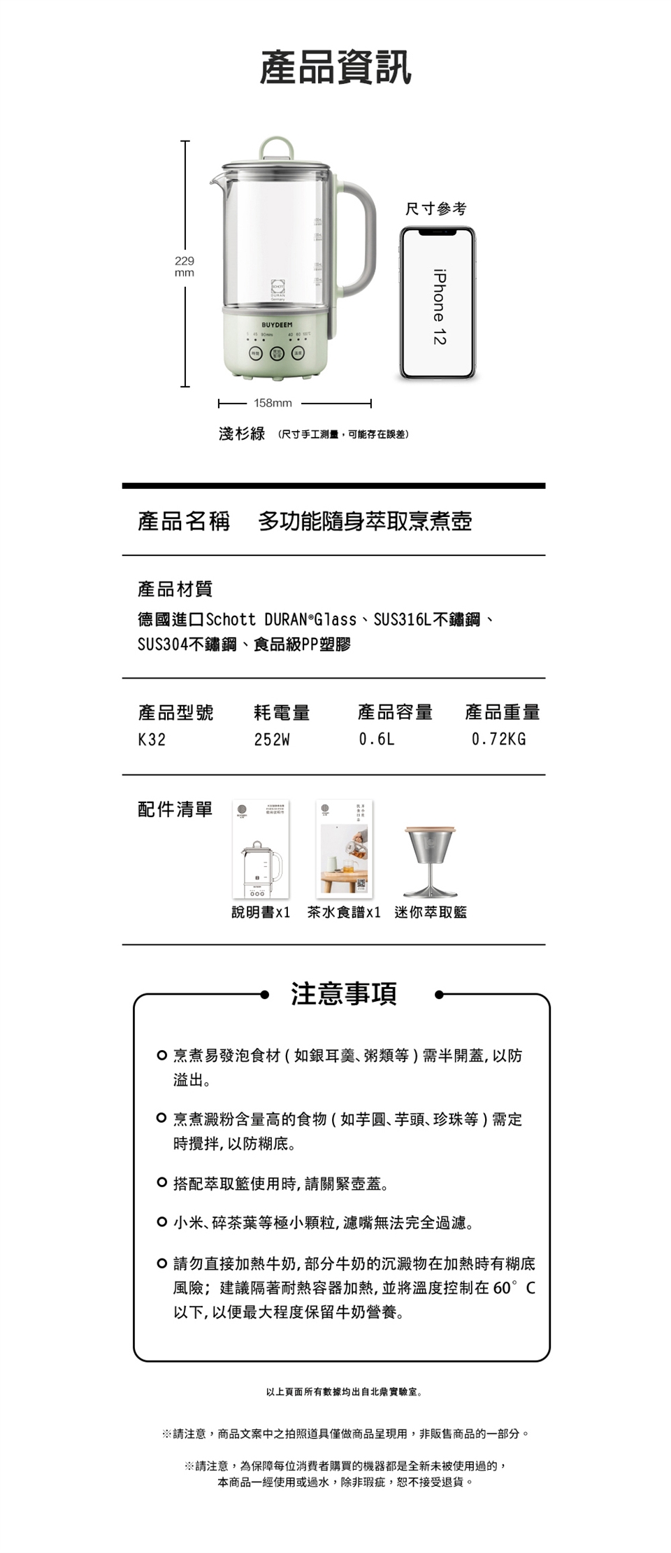 BUYDEEM北鼎多功能隨身萃取烹煮壺-K32