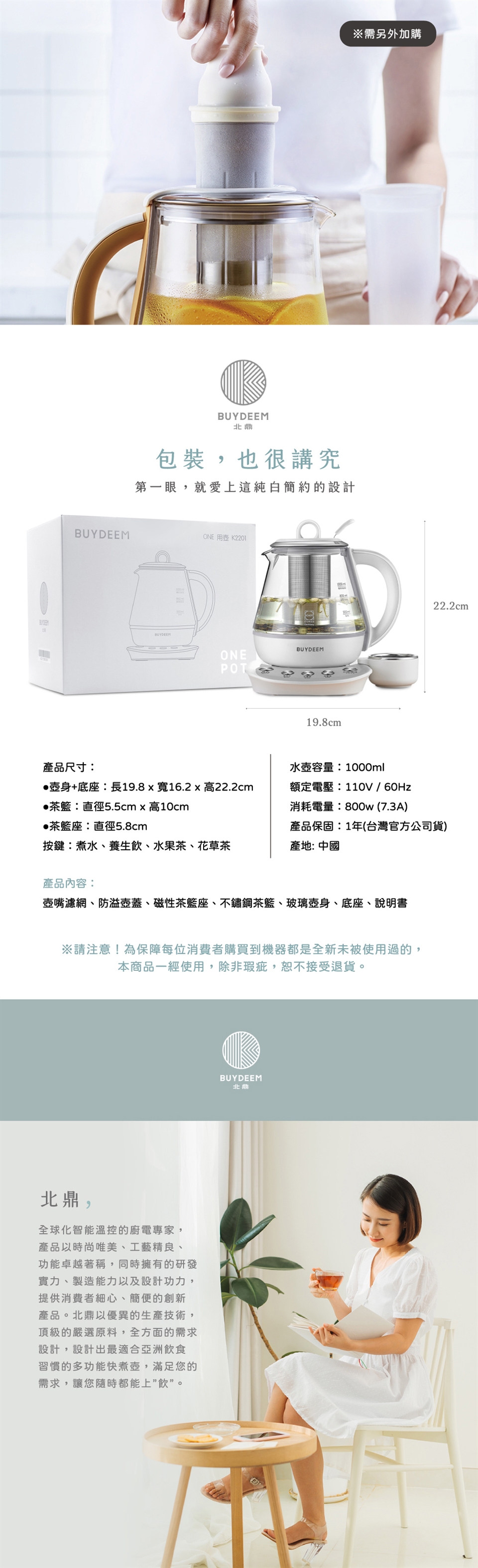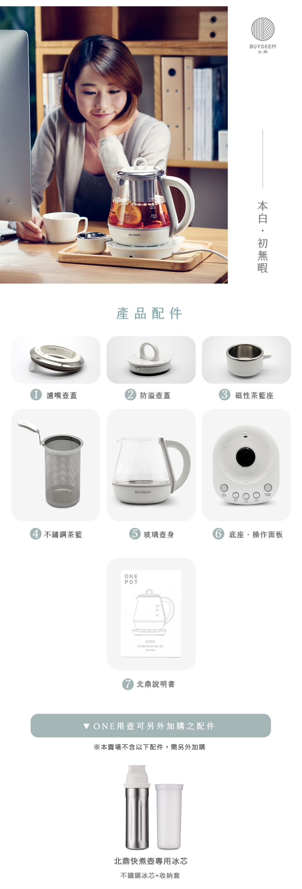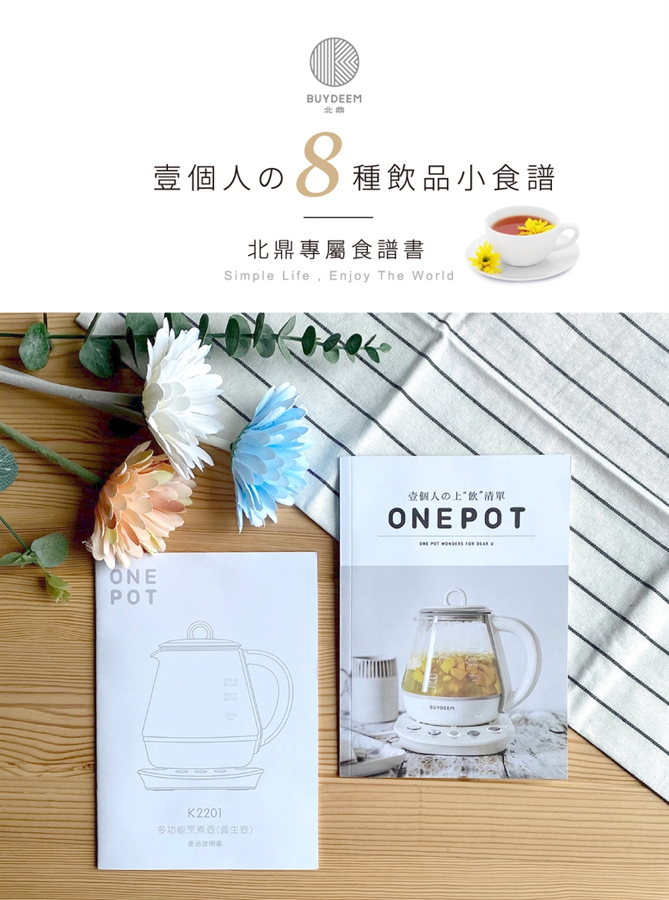 BUYDEEM北鼎玻璃養生快煮壺ONE用壺1L-K2201