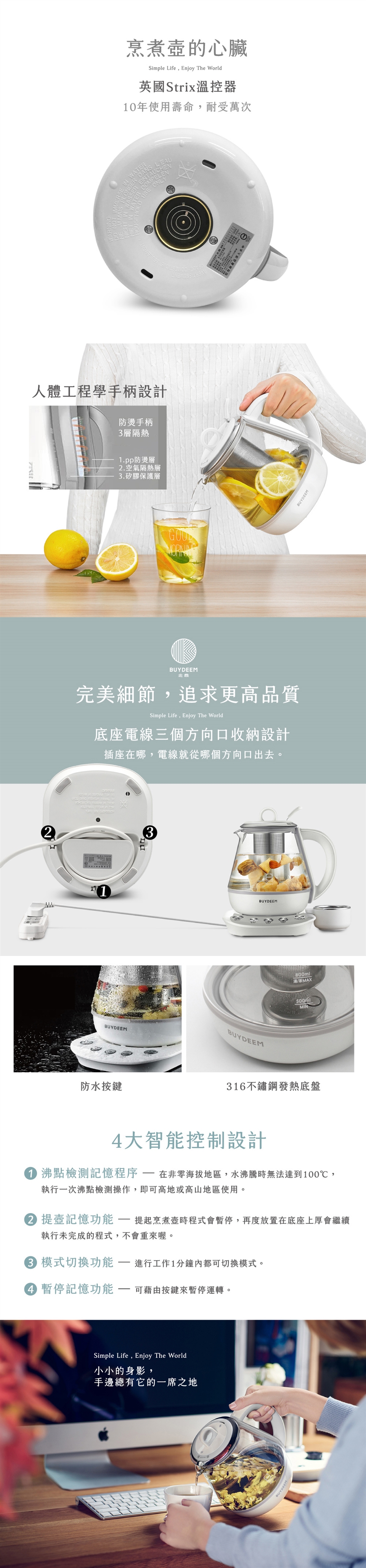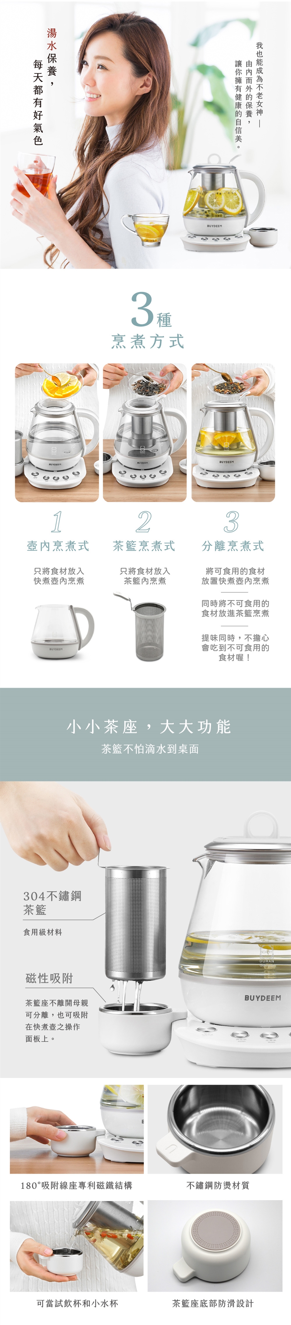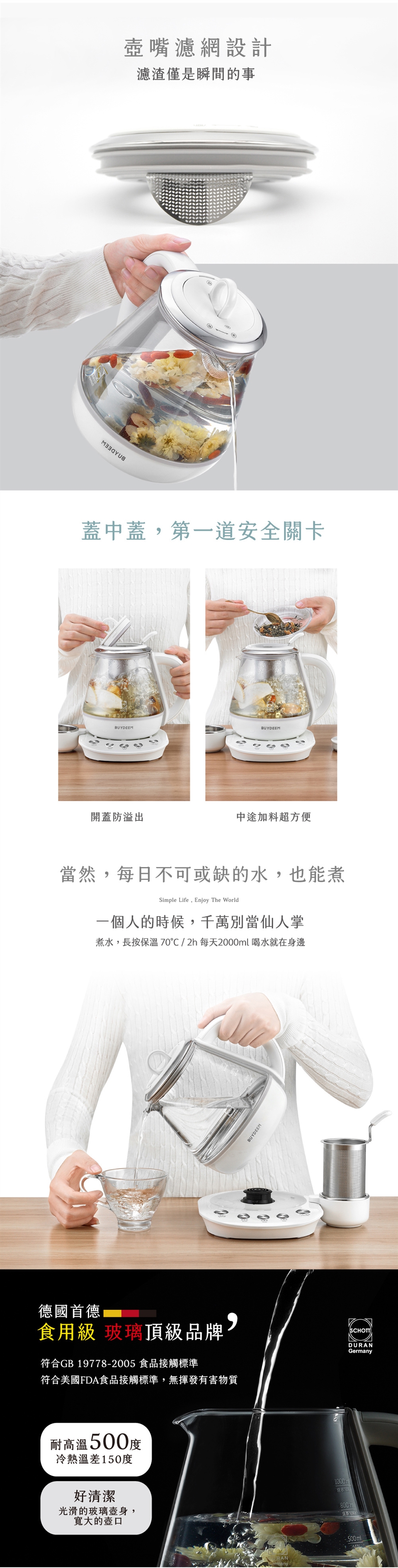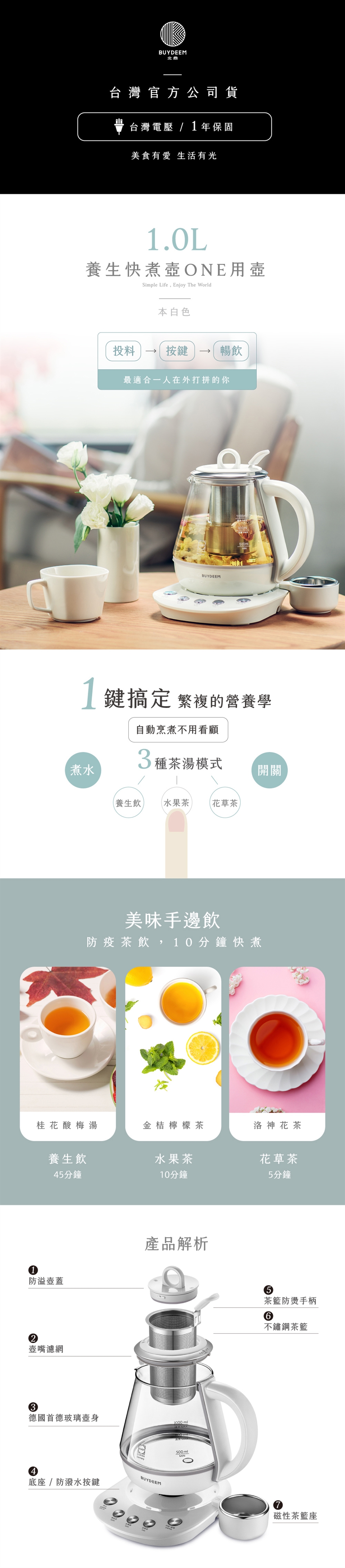BUYDEEM北鼎玻璃養生快煮壺ONE用壺1L-K2201