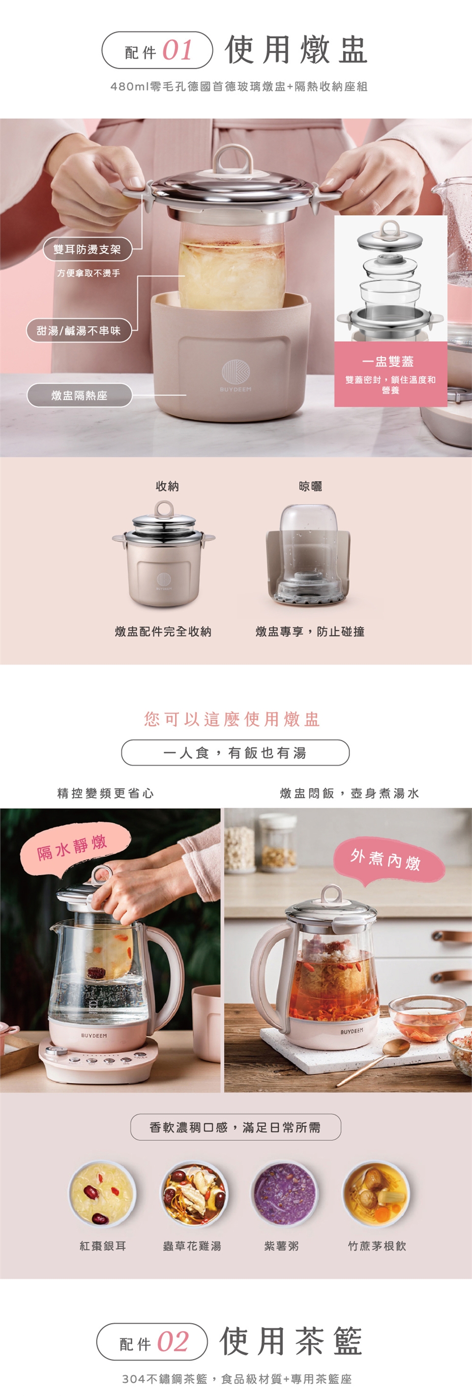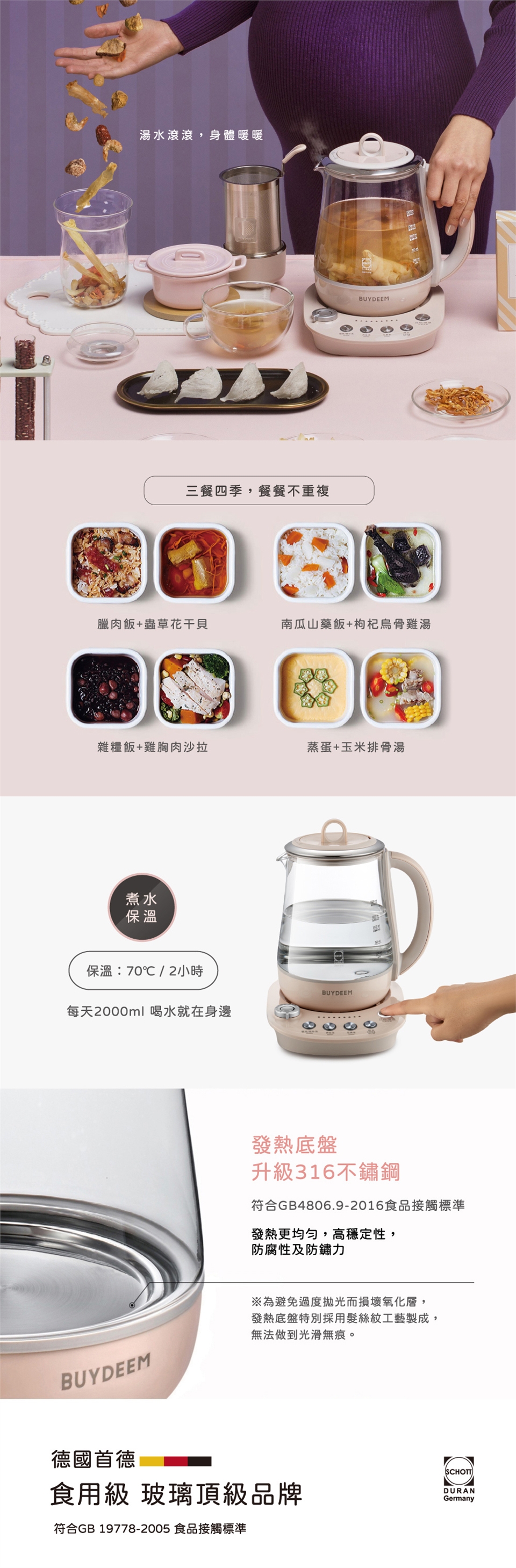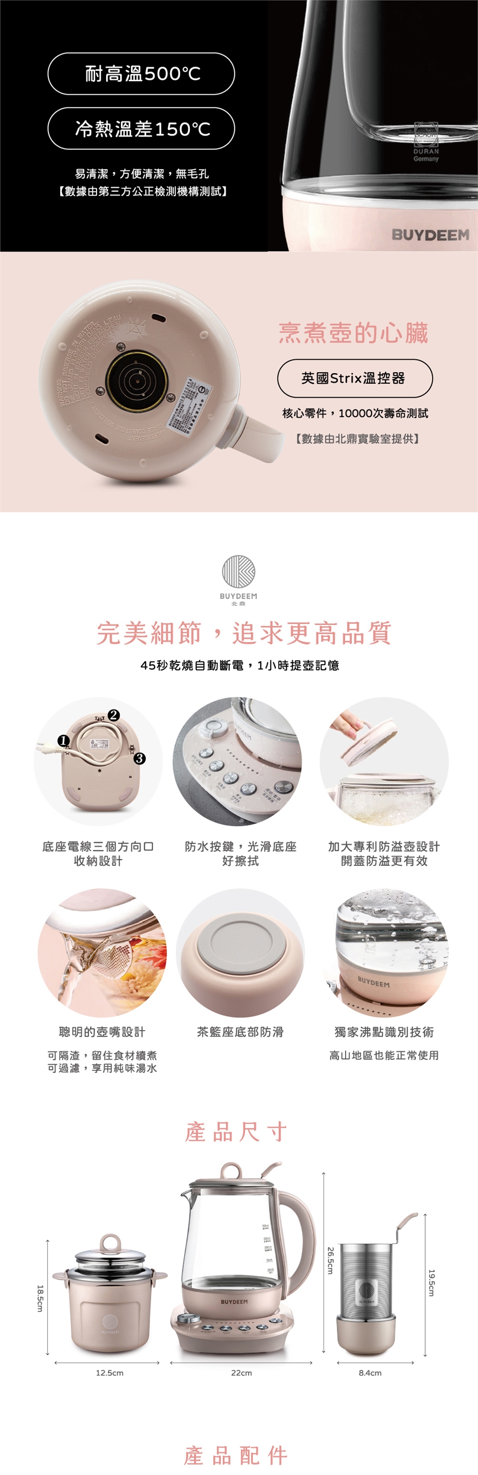 BUYDEEM北鼎玻璃養生快煮壺-粉漾美顏壼-旗艦全配版-K2691-茱萸粉