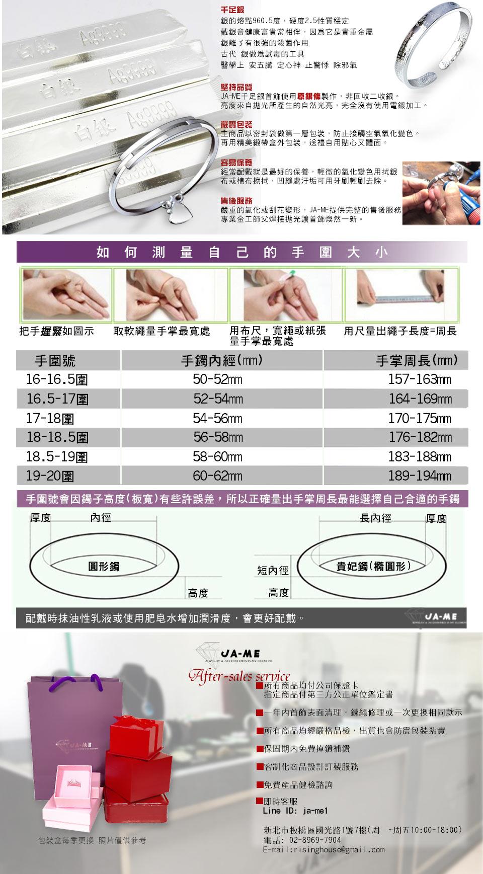 商品詳細介紹 使用方法說明 無 注意事項 此款銀飾平日活動皆可配戴,但請勿配戴接觸溫泉、漂白水等化學藥物。長時間不配戴請清理後擦乾放入密封袋,隔絕空氣中氧化分子以便保存,建議勿使用洗銀水,拭銀乳,酒精等化學腐蝕性較強之商品,會傷害首飾表層。