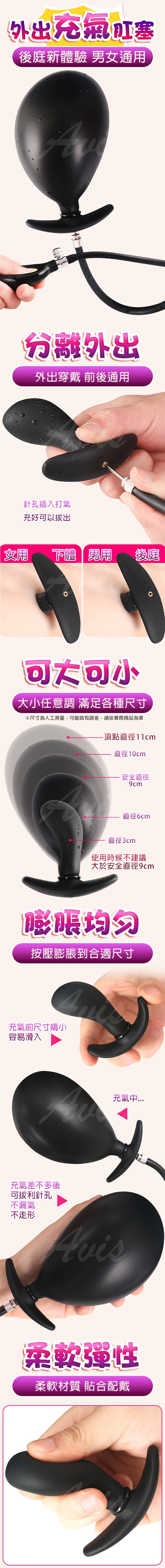 本品可以透過氣囊的作用,使後庭栓增粗,讓你根據自己的喜好自由選擇它的大小,到達高品味的渴望與需求。專為你的不同需要而設計,外表面光滑柔軟、彈性十足,使用時非常順暢,精心呵護你的嬌嫩部位。氣囊的起伏讓器具更粗壯,輕按氣囊邊的小汽閥,它立刻會恢復到原始的大小,讓你自由變換大小,體驗不同方位的性愛!