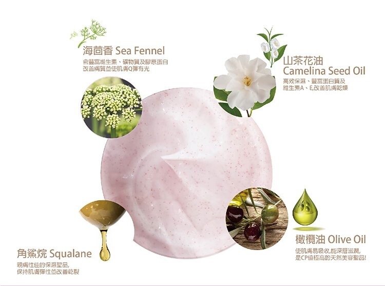 產品內含天然荷荷葩酯與杏仁粉植物顆粒