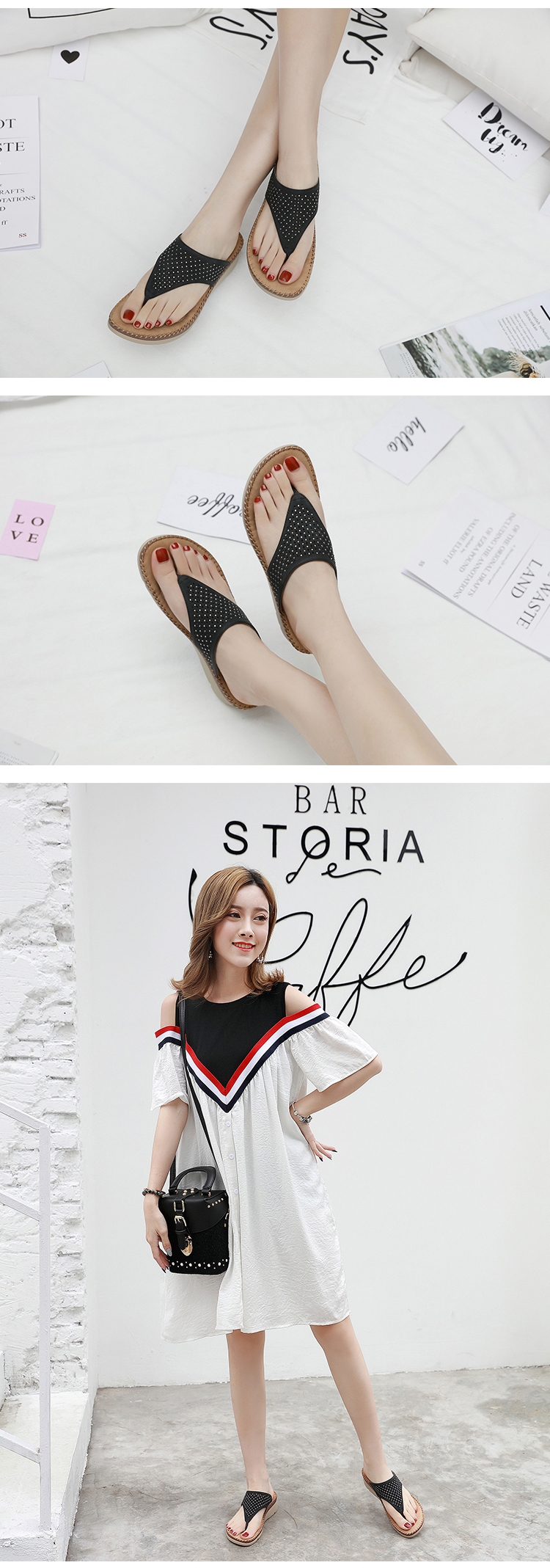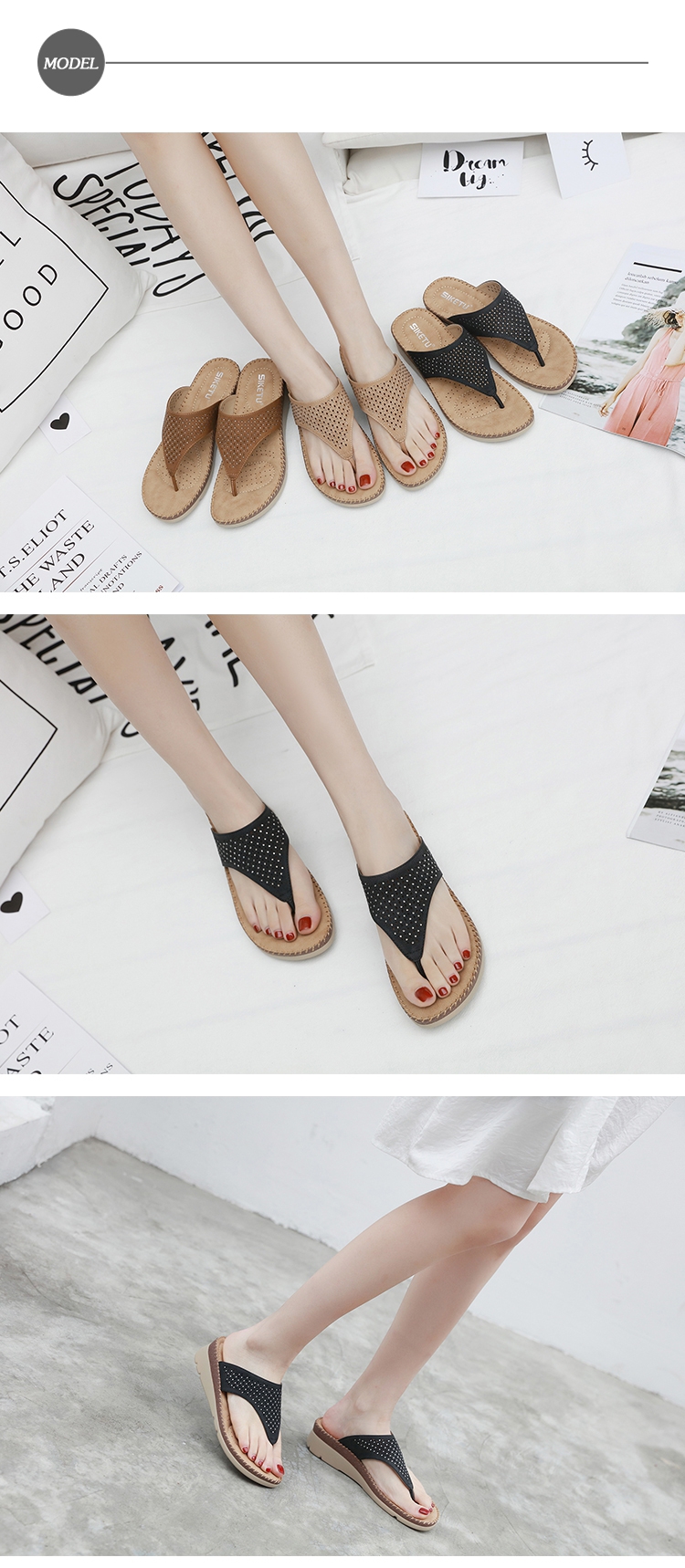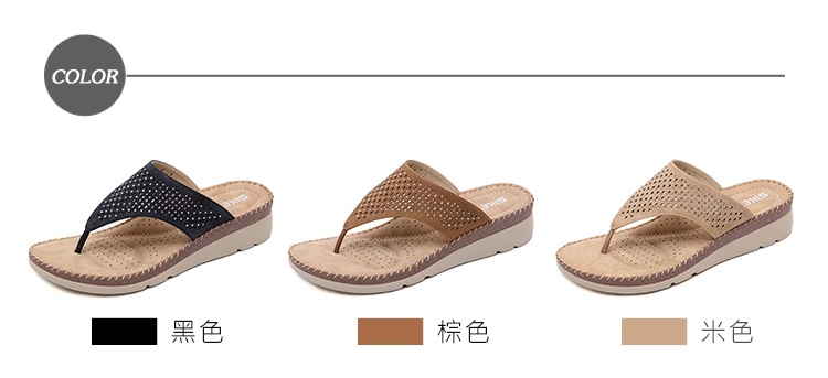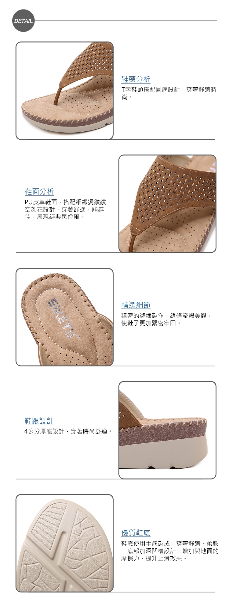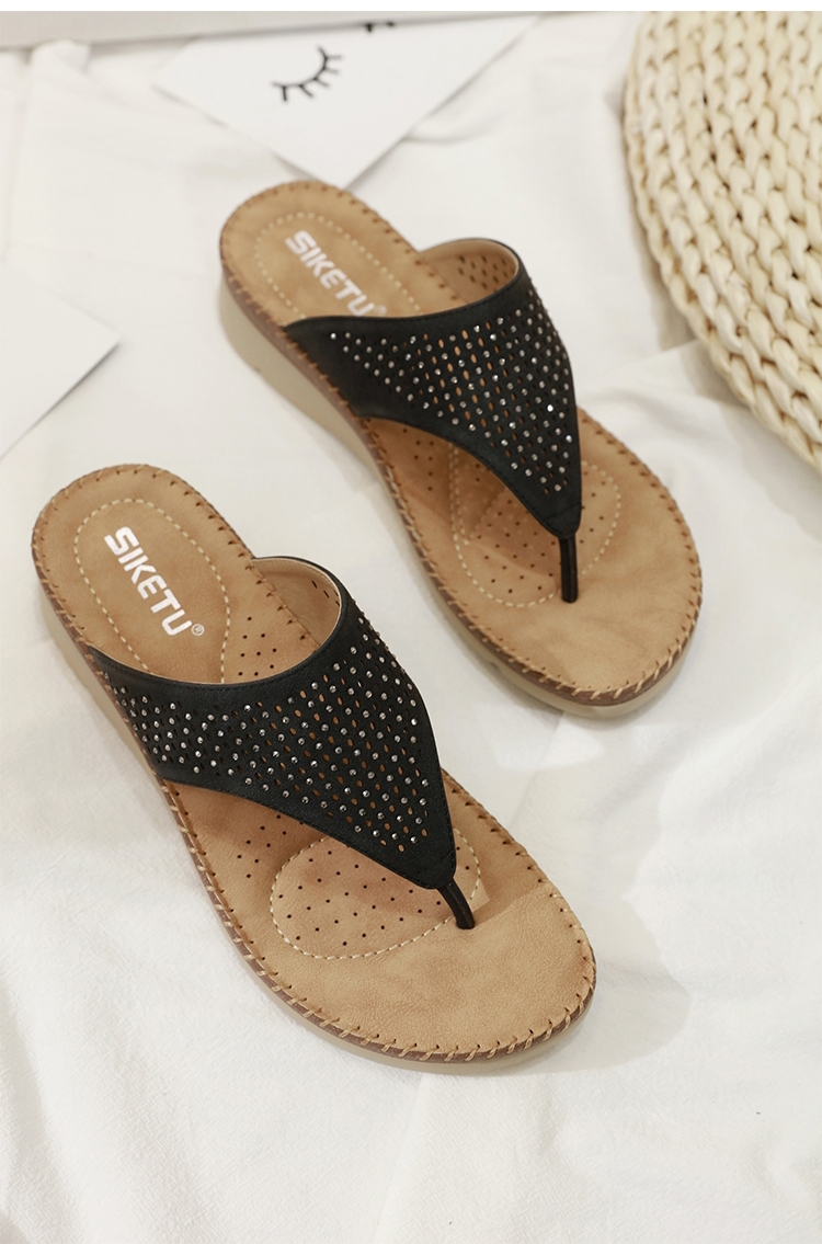 【QUEENA】經典民族風細緻燙鑽縷空刻花舒適厚底人字拖鞋 ( 黑 )