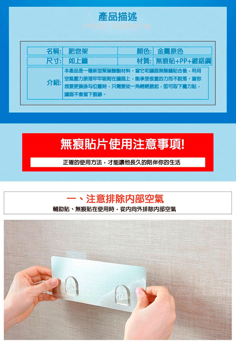 品名:【媽媽咪呀】免釘免鑽無痕不鏽鋼肥皂架