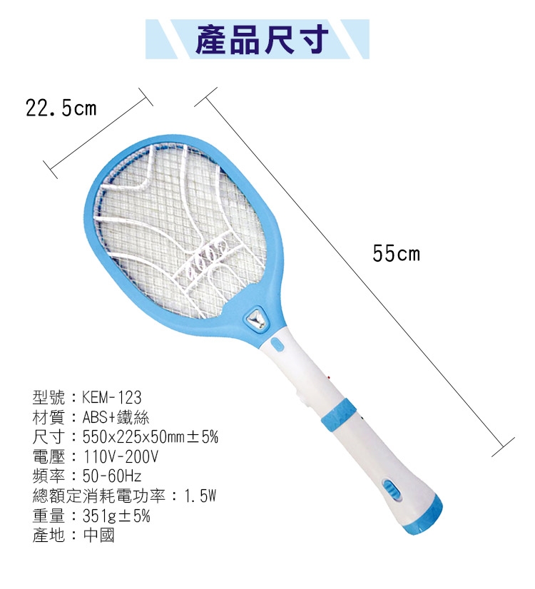 【kolin】雙截式充電三層電蚊拍(KEM-123)