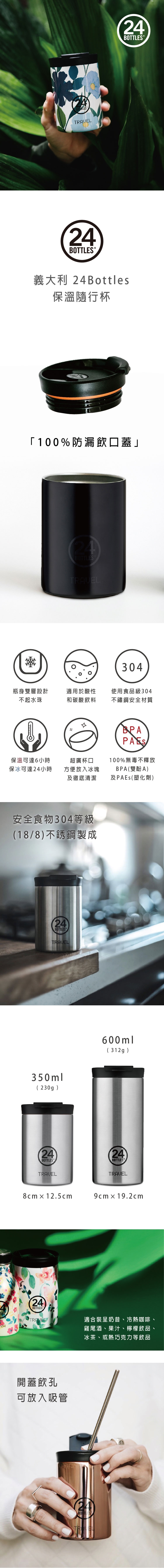 暢流飲孔及100%防漏翻蓋,特別為配合您生活風格所設計。 無論行走或定點使用都能滿足您的需求。 無限創意,除了裝盛咖啡及果汁之外,24保溫隨行杯可裝各種冷熱飲,熱湯及粥品也難不倒,保溫達6小時。
