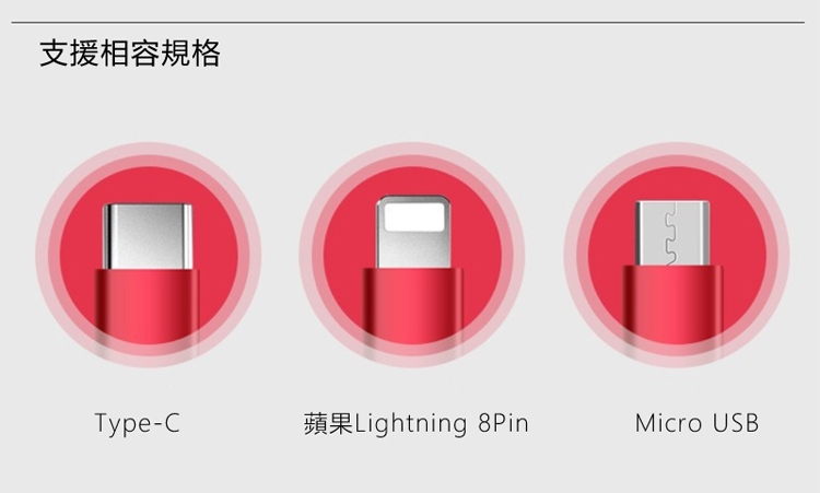 ◆支援 Type-C,蘋果Lightning 8pin, Micro USB規格