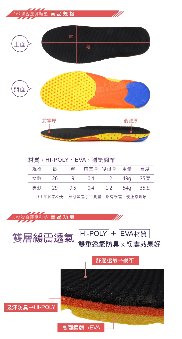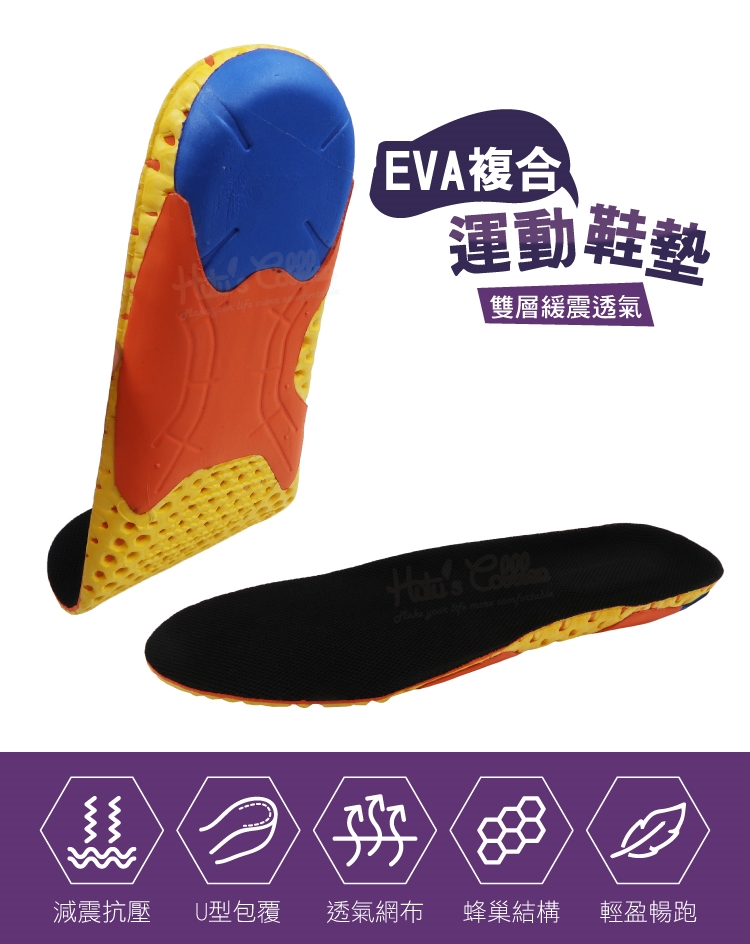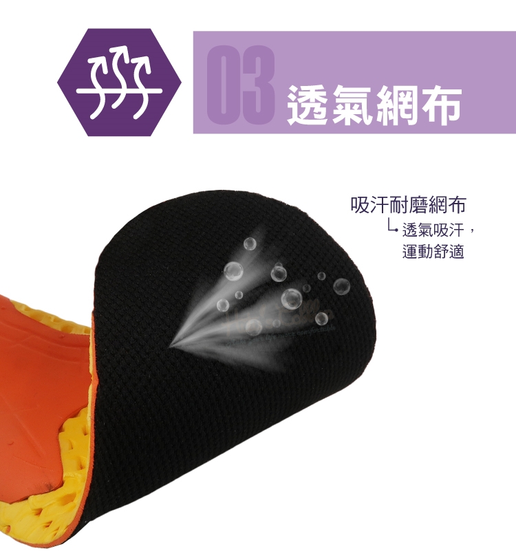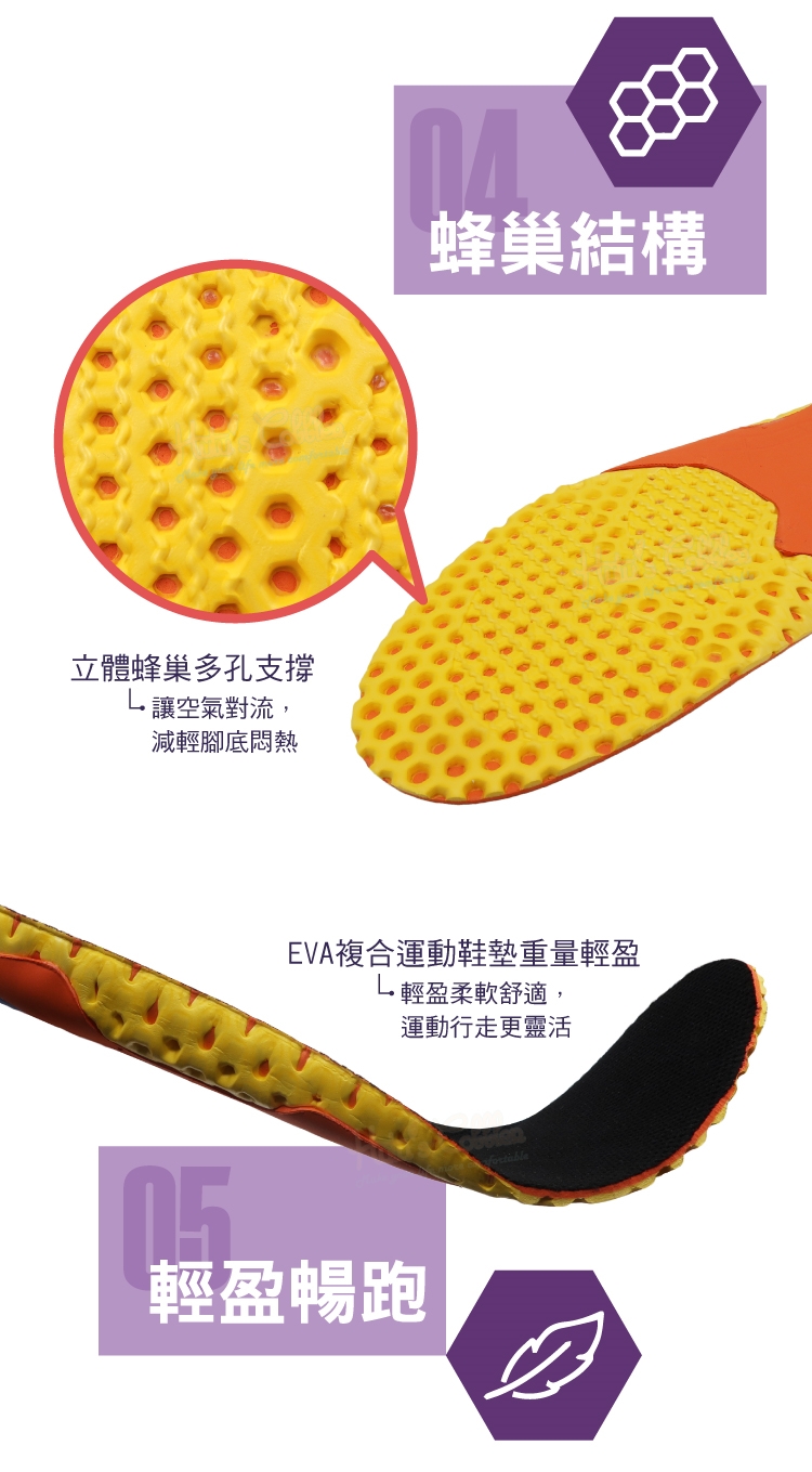 立體蜂巢多孔支撐,讓空氣對流,減輕腳底悶熱