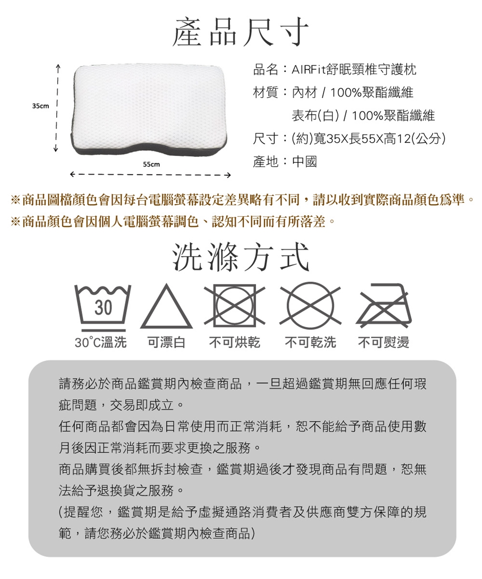 任何商品都會因為日常使用而正常消耗.恕不能給予商品使用數月後因正常消耗而要求更換之服務. 商品購買後都無拆封檢查.鑑賞期過後才發現商品有問題.恕無法給予退換貨之服務. (提醒您.鑑賞期是給予虛擬通路消費者及供應商雙方保障的規範.請您務必於鑑賞期內檢查商品)