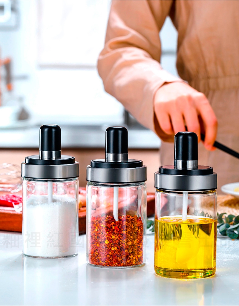 【媽媽咪呀】蓋勺一體密封玻璃調味料罐