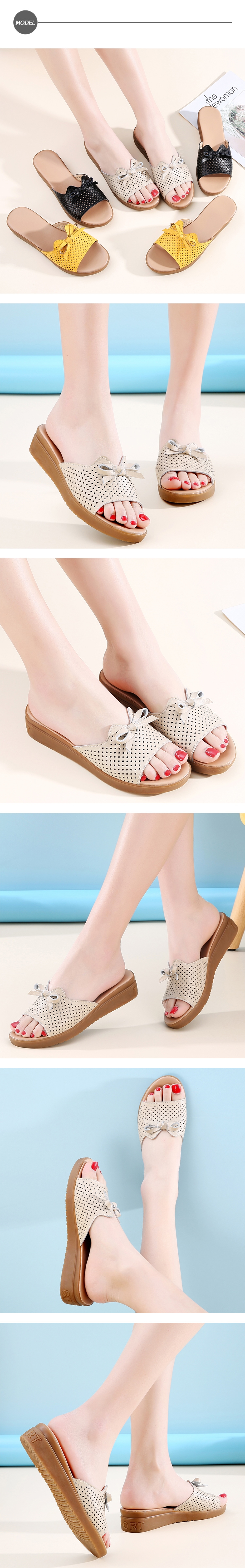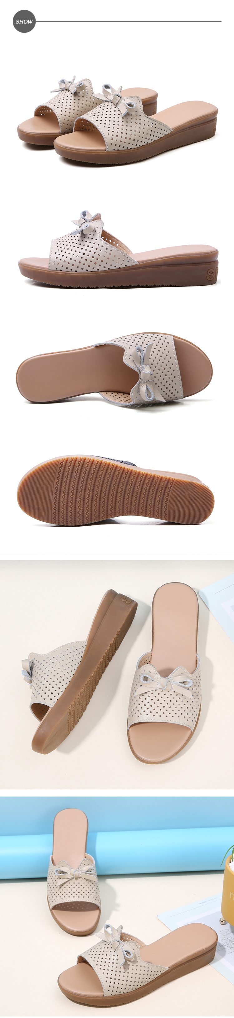 【LOVE FOOT 樂芙】真皮甜美縷空蝴蝶結花邊氣質舒適平底拖鞋 ( 米 )