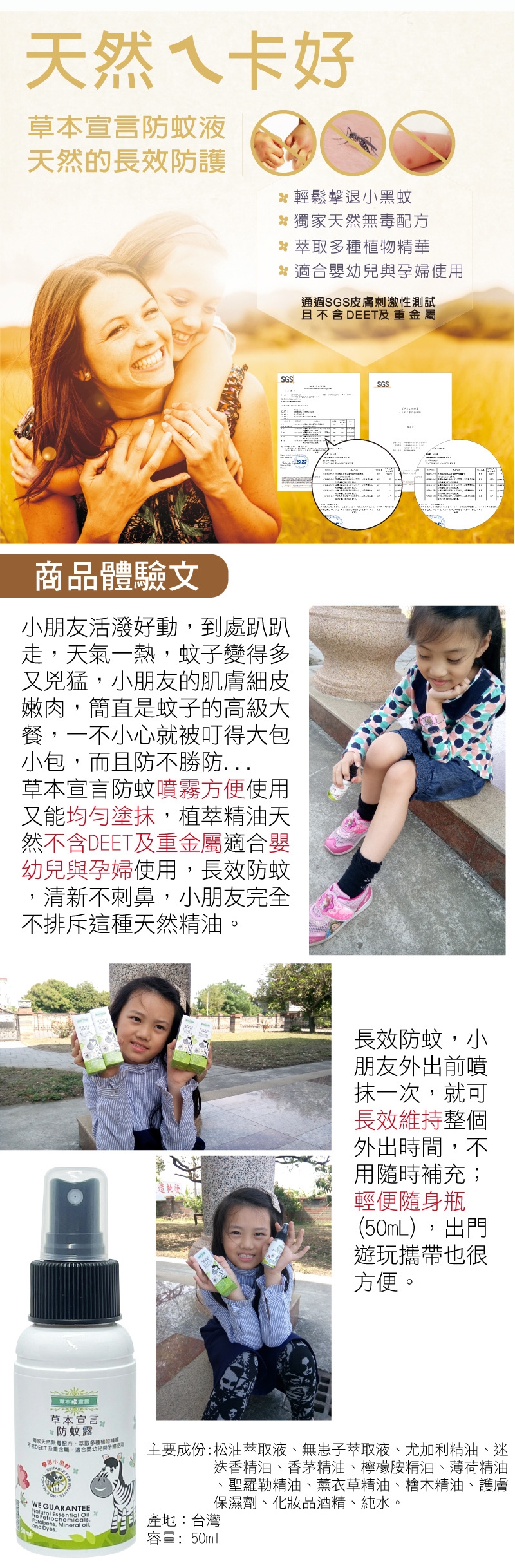 ★獨家天然無毒配方,萃取多種植物精華不含DEET及重金屬,適合嬰幼兒與孕婦使用
