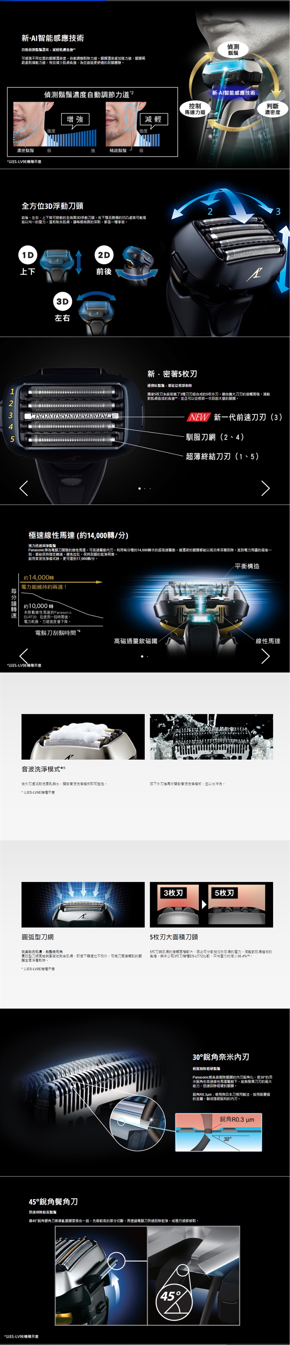 全球最快速,高速線性馬達,14,000轉/分 (音波洗淨17,000轉/分) 每個曲面的深剃,都是一種享受。