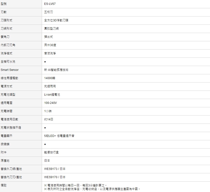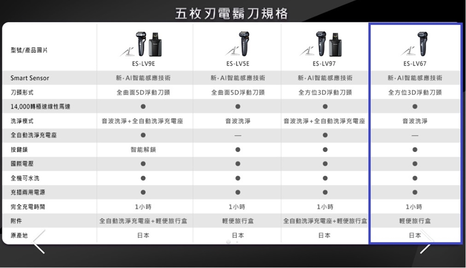 Panasonic 國際牌 日製防水五刀頭充電式電鬍刀 ES-LV67-K