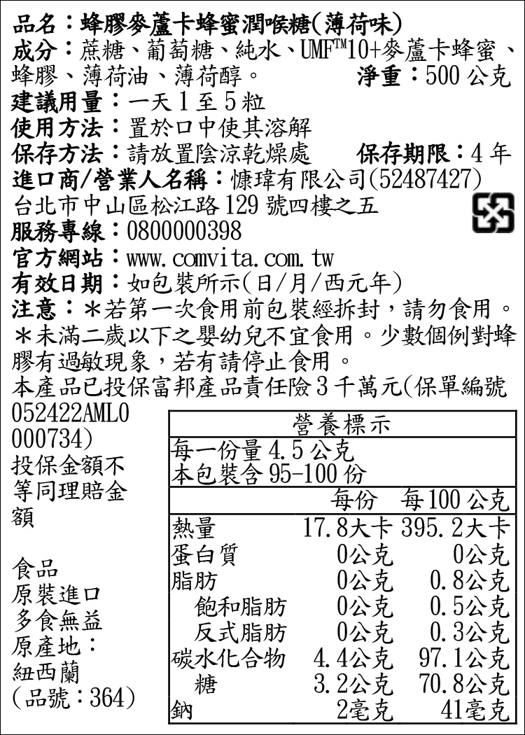 *若第一次食用前包裝經拆封,請勿食用。*少數個例對蜂膠有過敏現象,若有請停止食用。*二歲以下嬰幼兒不建議食用。台灣氣候溼熱,開封後請置陰涼處,並勿置於孩童易取處。