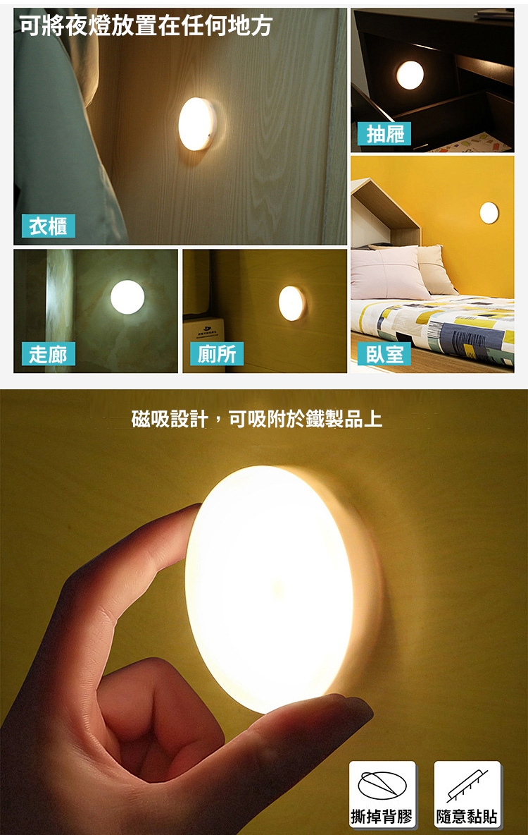 電池式便攜磁吸觸控LED圓形小夜燈(1入)