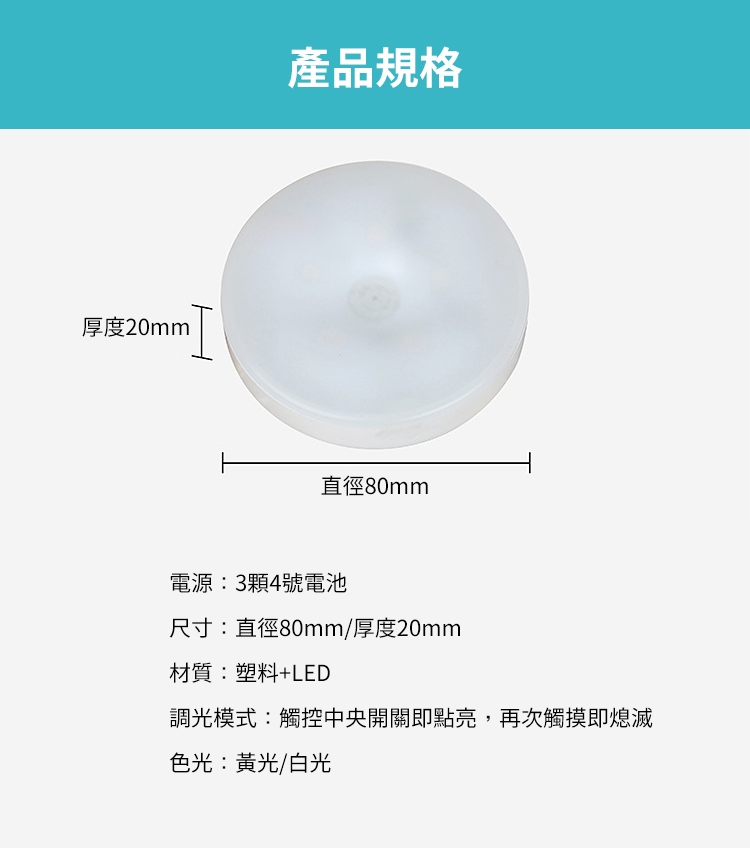 每個小夜燈使用三顆四號電池,背膠貼紙為消耗品,迷你型設計使用地點多元化不設限,不管是走廊、臥室或陽台皆能勝任!