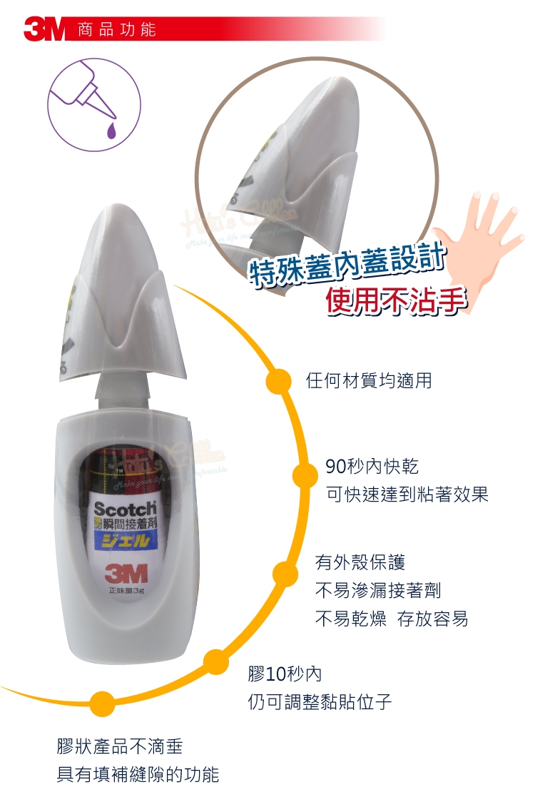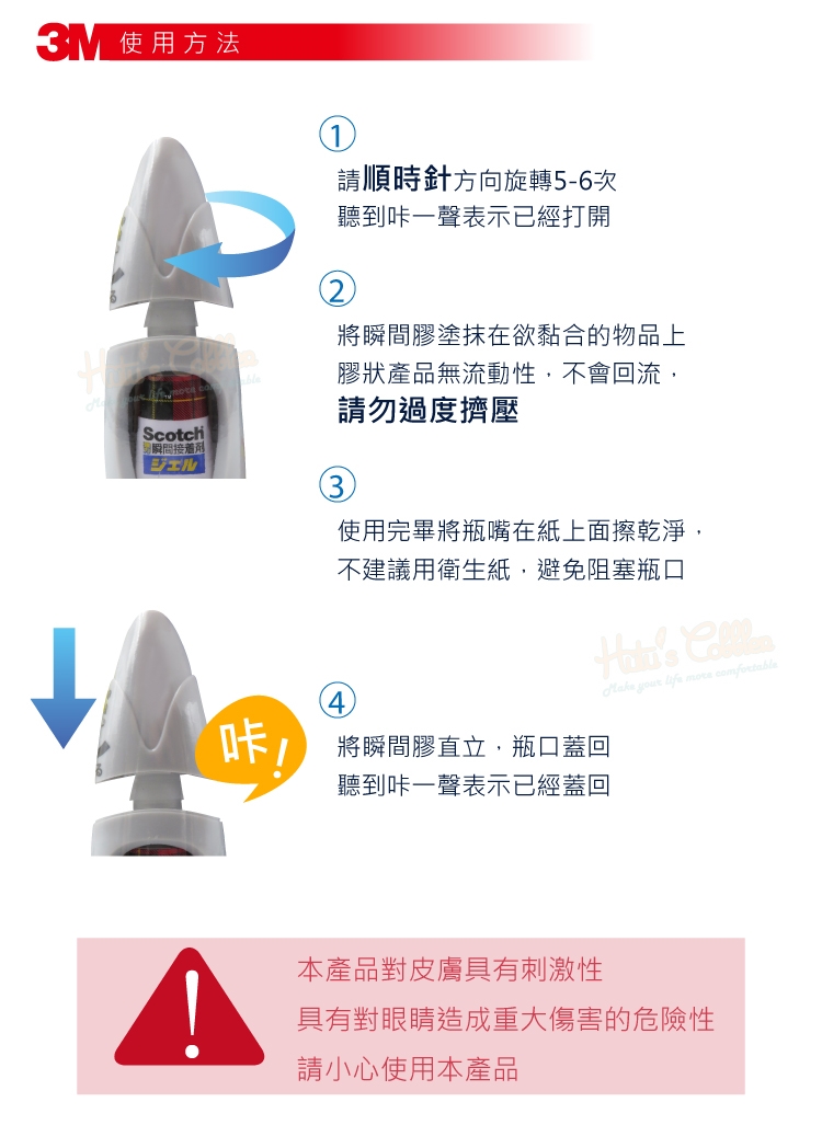 4.將瞬間膠直立,瓶口蓋回,聽到卡一聲表示已經蓋回