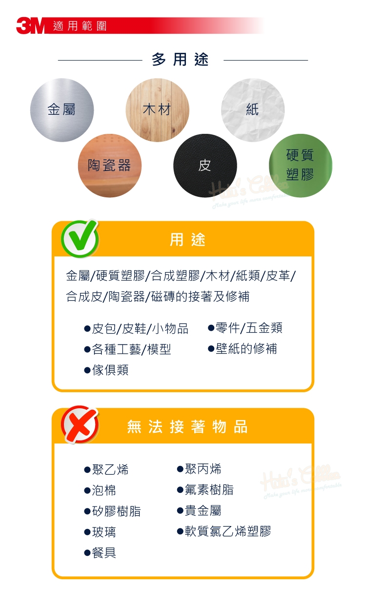 金屬/硬質塑膠/合成塑膠/木材/紙類/皮革/合成皮/陶瓷器/磁磚的接著及修補