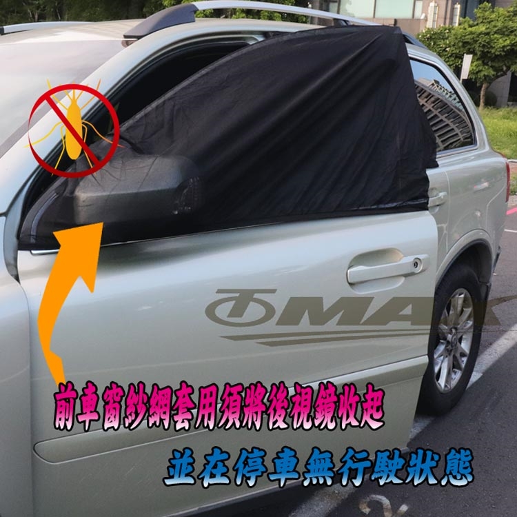 前車窗紗網套使用時,須將後視鏡收起並在停車無行駛狀態下