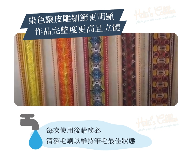 2號天然彩繪筆,非常適合在謝裡丹風格的浮雕皮革作品上繪畫,