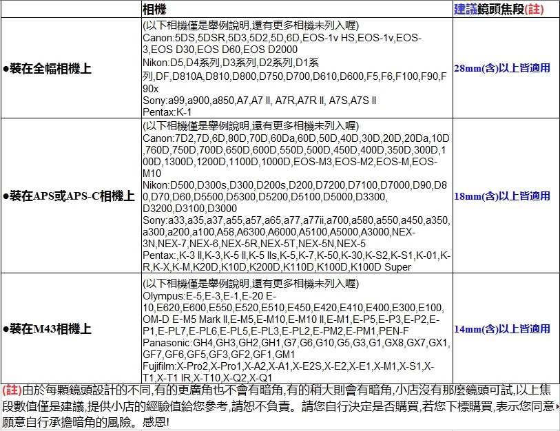 ●【適用鏡頭焦段】