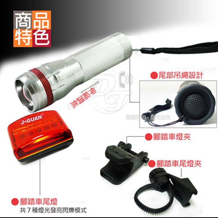 商品規格: ◎品名:J-GUAN 12W亮度可調焦手電筒/車燈組 JG-12WB2