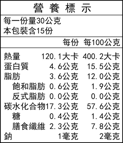 ※本產品含有大麥、杏仁果、核桃及銀杏果;對其會過敏者,請謹慎食用。