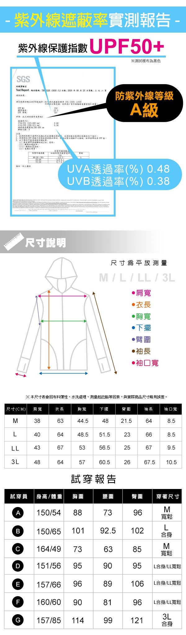 全程台灣高品質製作,時尚的顯瘦合身剪裁,加上高透氣機能涼感抗UV布料,即使曝曬在大太陽下,也透氣不悶熱,同時也能阻擋紫外線的照射。特殊版型設計加上5種繽紛色彩,防曬也能時尚顯瘦,讓女孩們不管在開車、騎車、運動的戶外或辦公的冷氣房內皆展現出亮眼風采。
