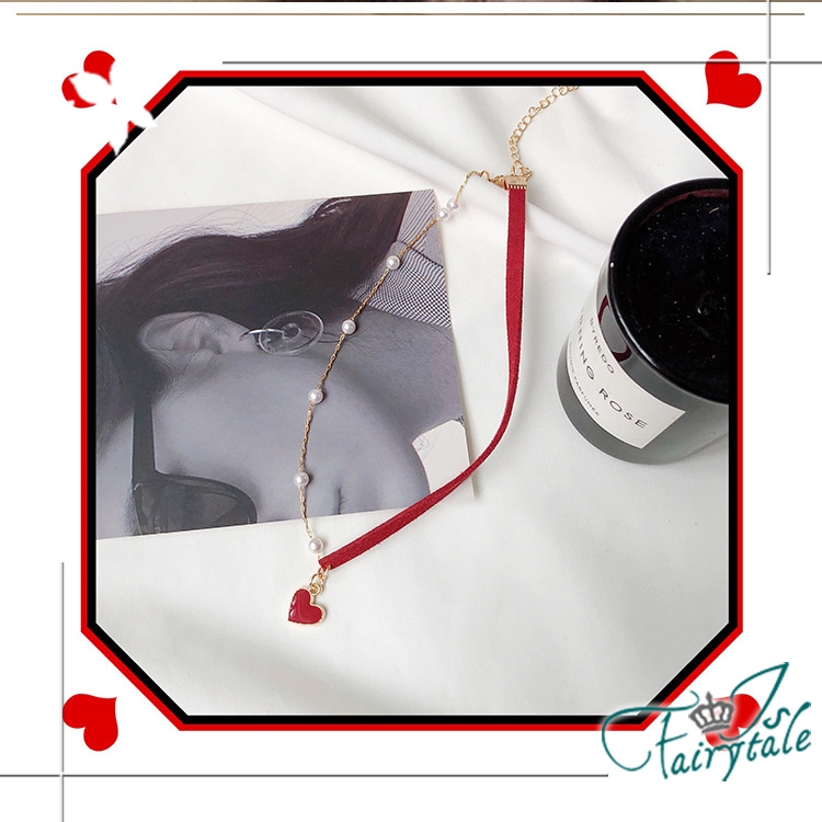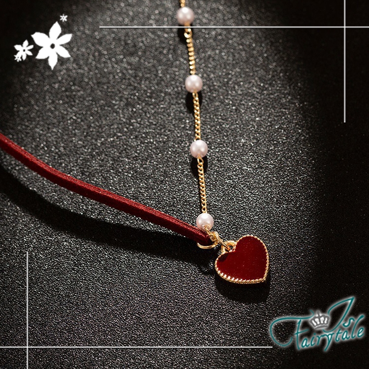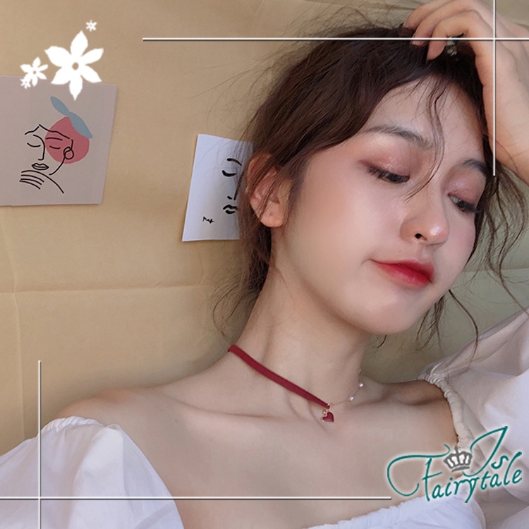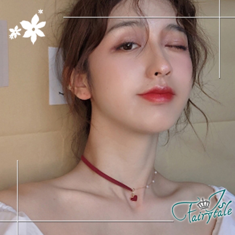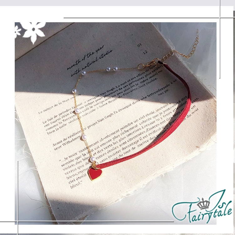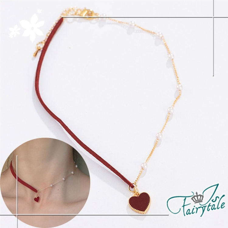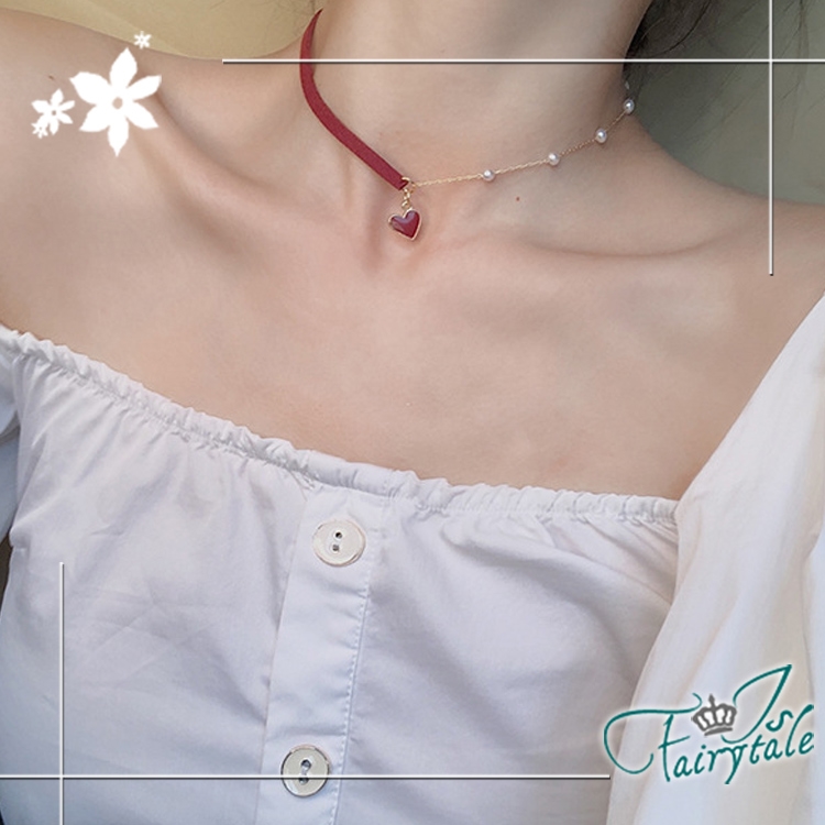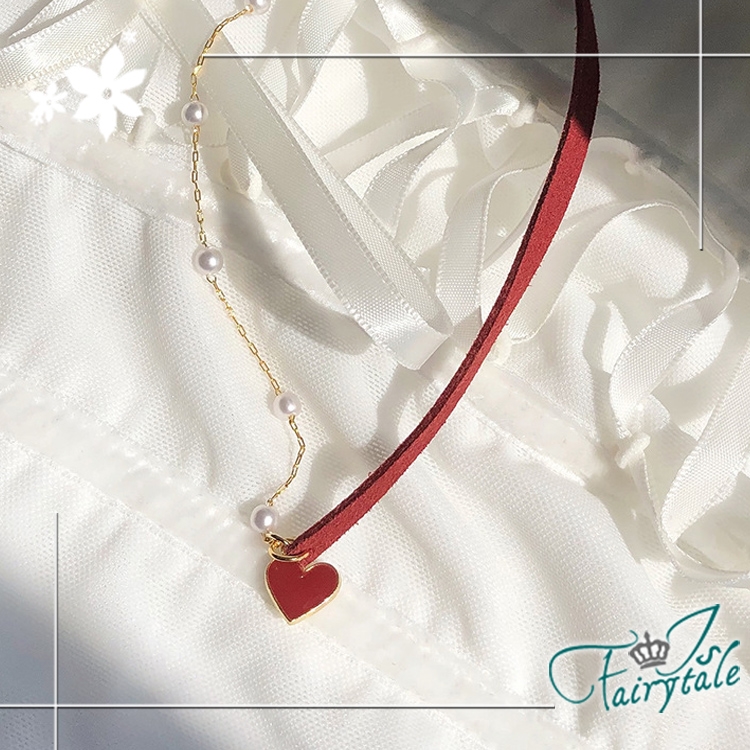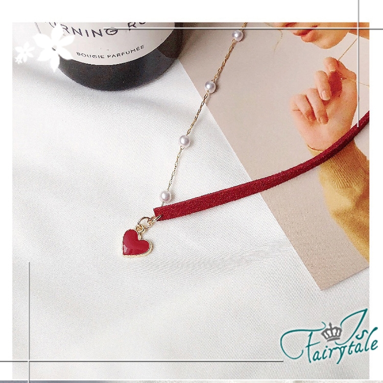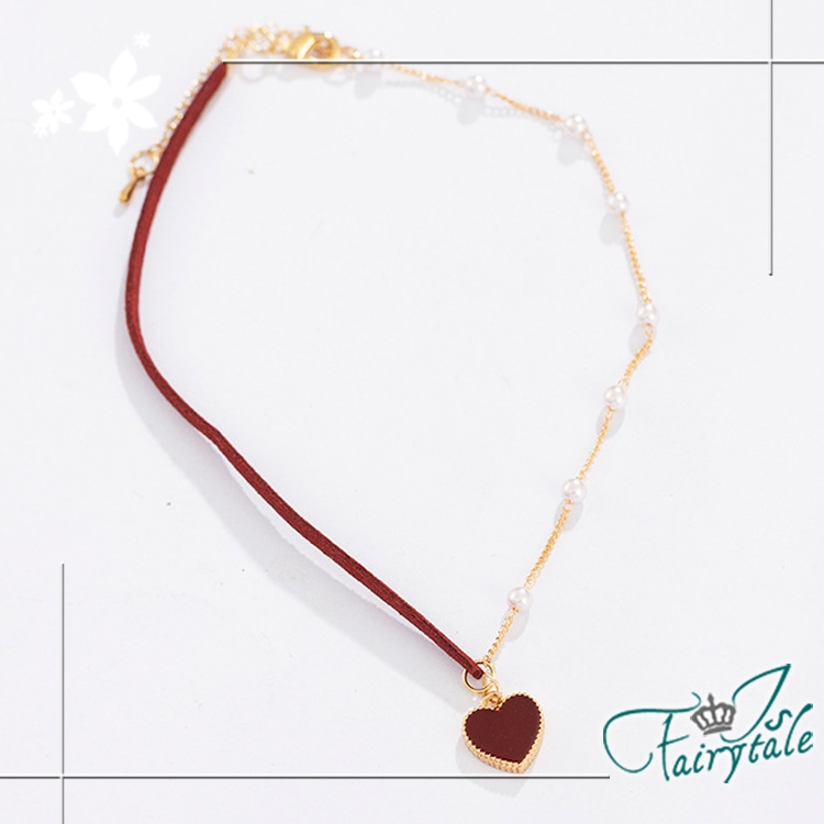 簡約小紅心造型氣質網紅款式,一半麂皮繩一半珍珠鍊,