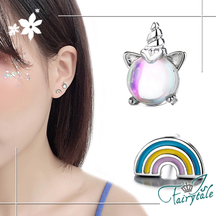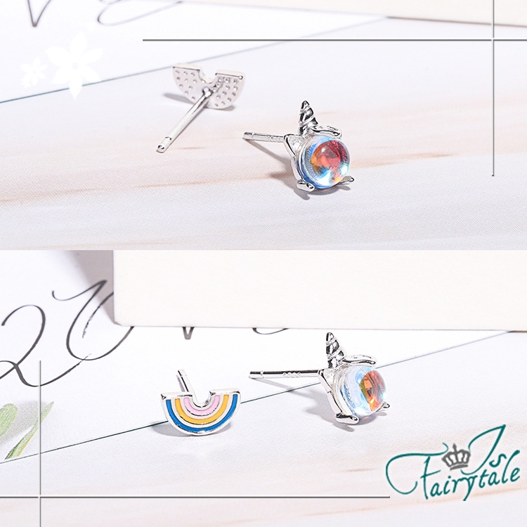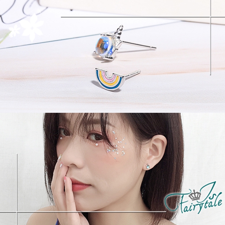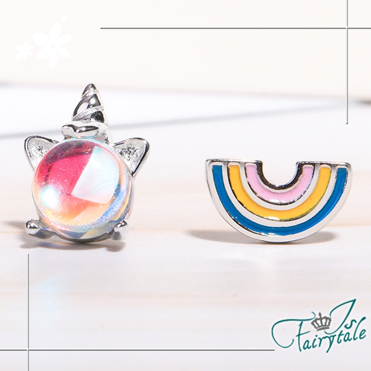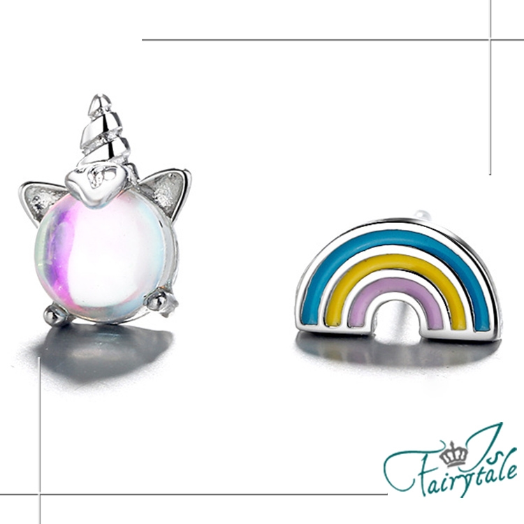 彩虹獨角獸不對襯風格,月光石藍水晶韓風氣質款式,