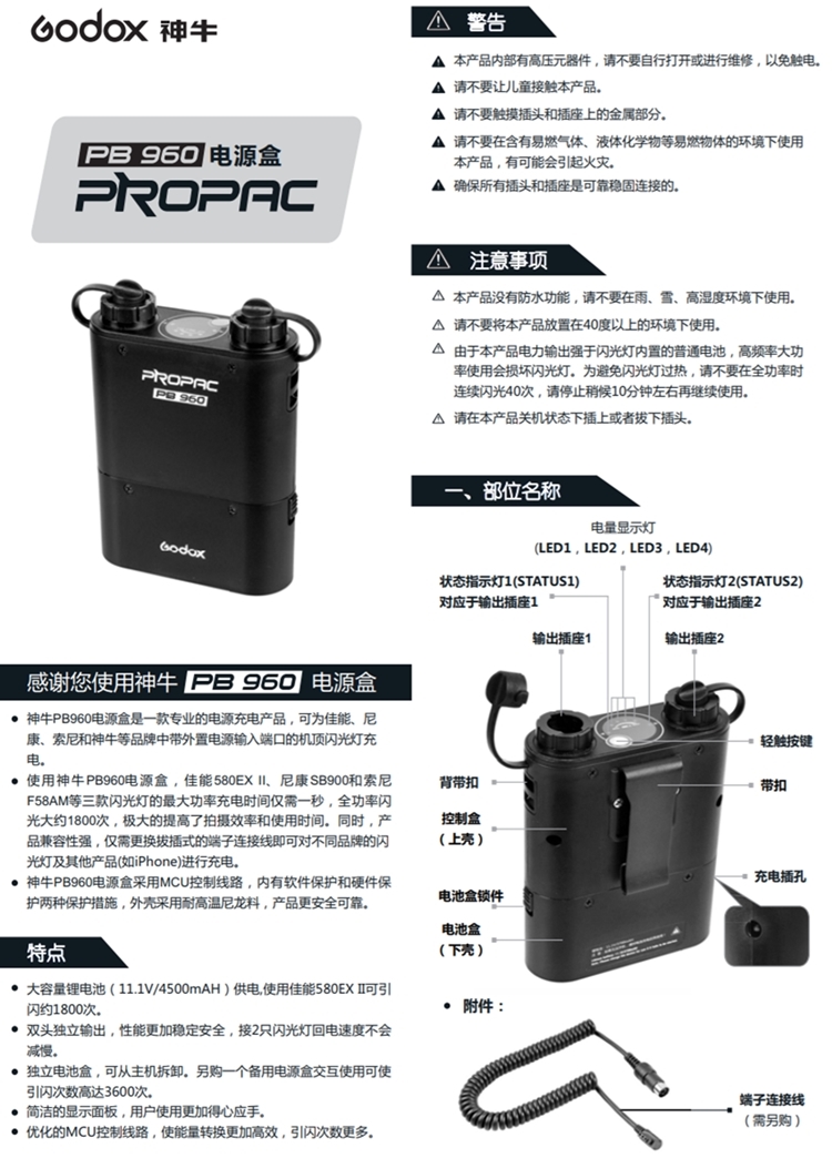 ●【品名】神牛Godox外接電池瓶電池盒PB-960回電桶+PB-NX閃燈連接線(開年公司貨)適Nikon尼康SB-910 SB-900 SB-800 SB28(黑色)