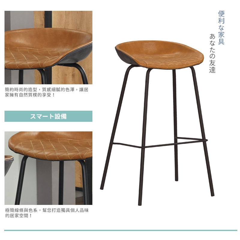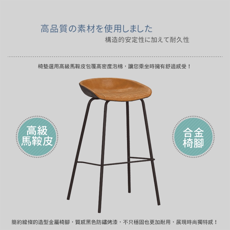 椅面選用質感馬鞍皮革,搭配Q彈高密度泡棉,坐感舒適!