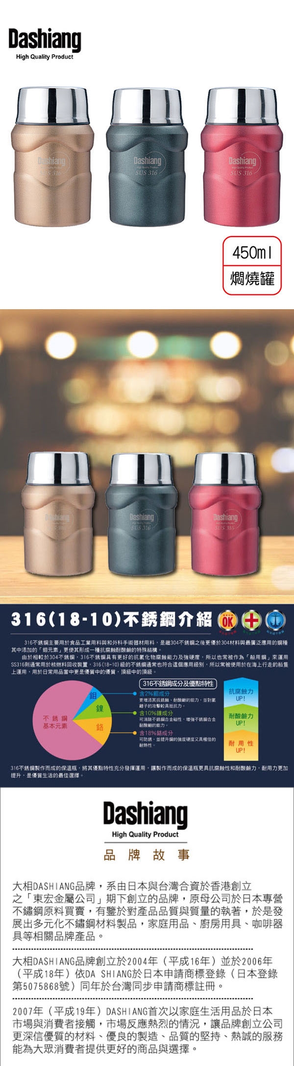 Dashiang 內膽316真空燜燒罐450ml(附不鏽鋼湯匙) DS-C66-450