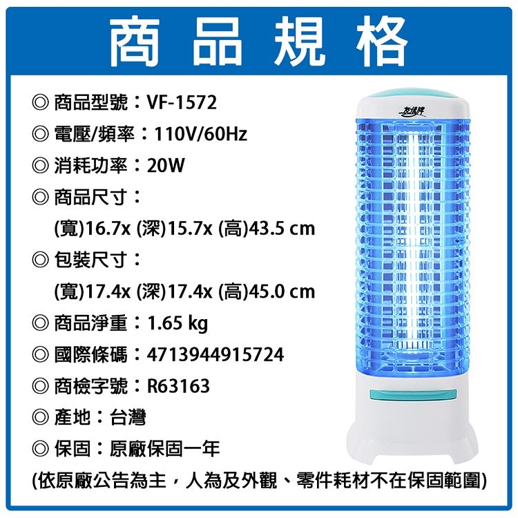 友情牌 15W方形電擊式捕蚊燈-飛利浦燈管 VF-1572 (台灣製造)