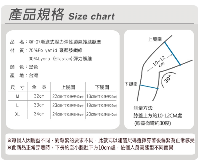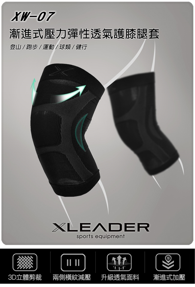 LEADER XW-07漸進式壓力彈性透氣護膝腿套