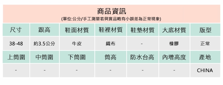 2.鞋類商品依功能及用途之不同,鞋底各有其止滑係數之個別不同,使用鞋類商品請用於正常平坦之路面,非雨鞋或雨靴類商品,請避免穿著於下雨濕滑路面上行走。