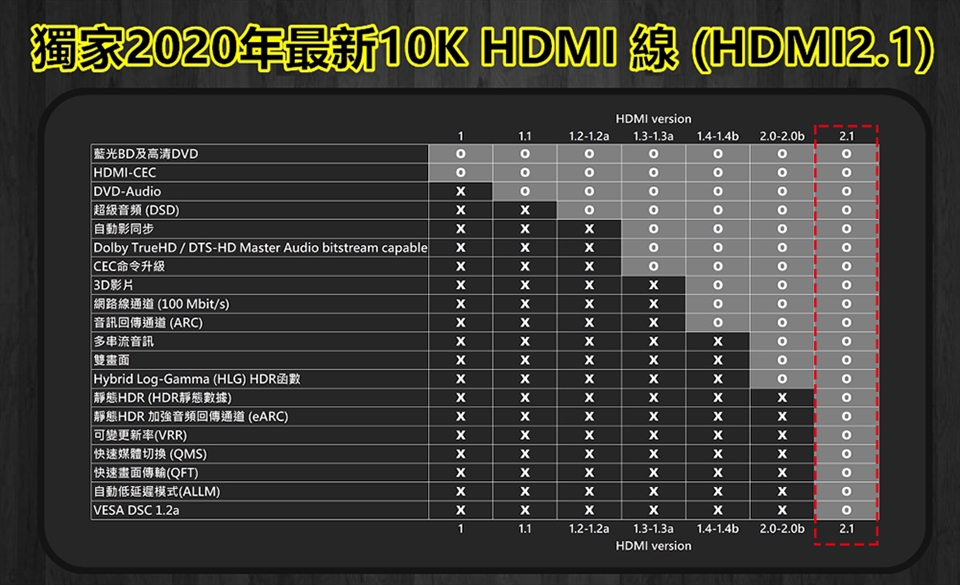 ●2021年最新HDMI 2.1版本(48Gbps)