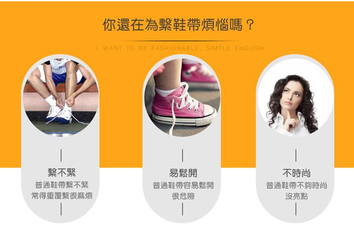 懶人鞋帶可自由鬆緊調節鞋帶拉力,一次繫帶,方便穿脫