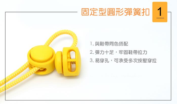 只要按住彈簧扣,一推固定就走,一拉即可鬆開鞋帶,輕鬆便利
