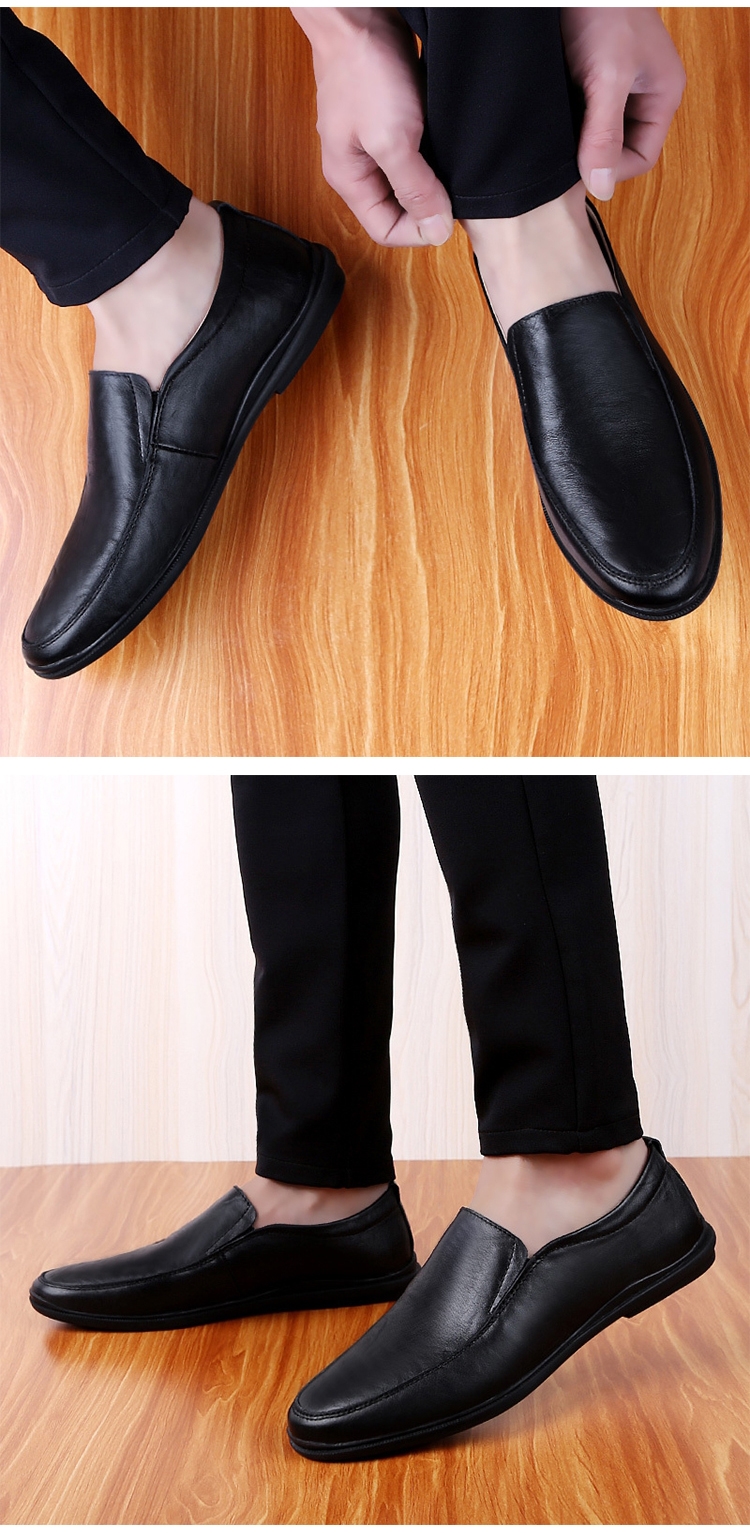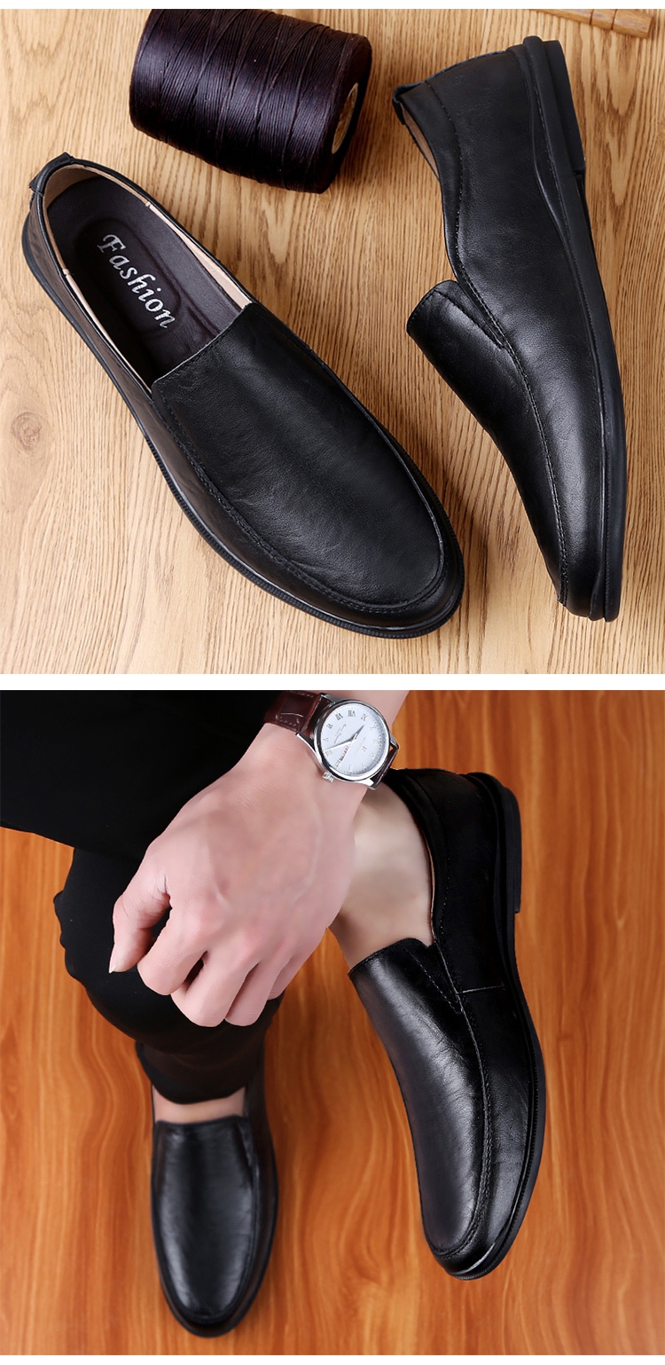 【Ansel】真皮質感純色經典百搭窄版樂福鞋 ( 黑 )