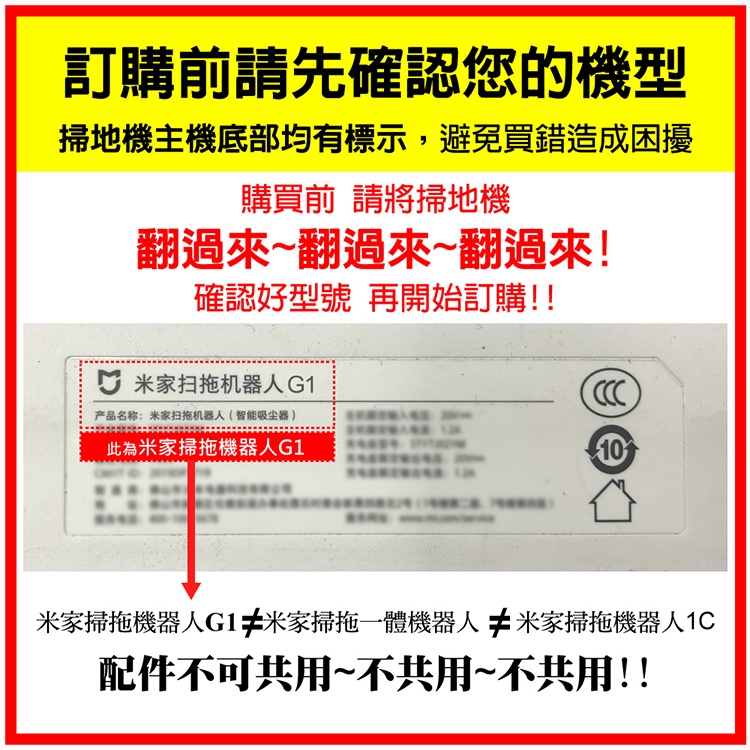 訂購前請先確認您的機型(掃地機主機底部均有標示)