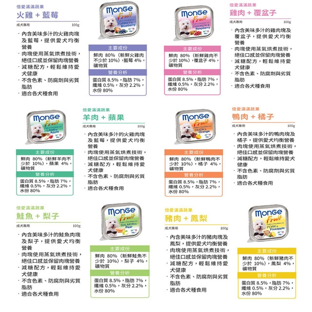 營養分析:蛋白質8.5%,脂肪7%,纖維0.5%,灰分2,2%,水份80%以中型犬為例,每日可餵食5-6盒(分2-3餐餵食),餵食時請為愛犬準備新鮮乾淨的飲水以供飲用。