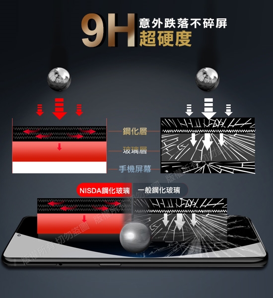 用優質玻璃製成,9H硬度,防刮、耐摔、防爆