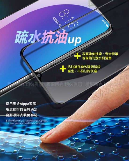 表面頂級9H硬化抗刮耐磨處理,有效防止螢幕刮傷,使螢幕保護貼更加的耐用